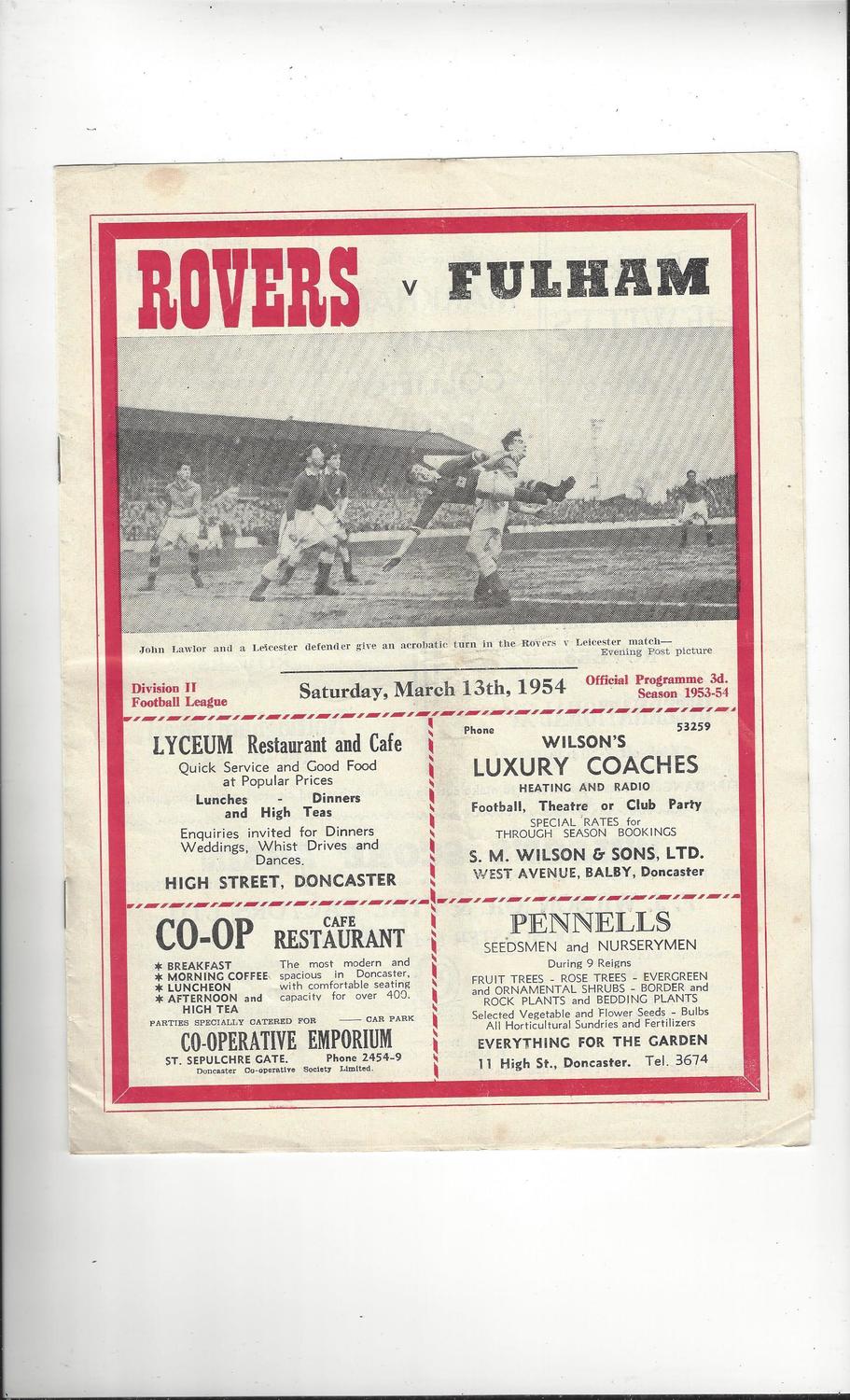 1953/54 Doncaster Rovers v Fulham Football Programme