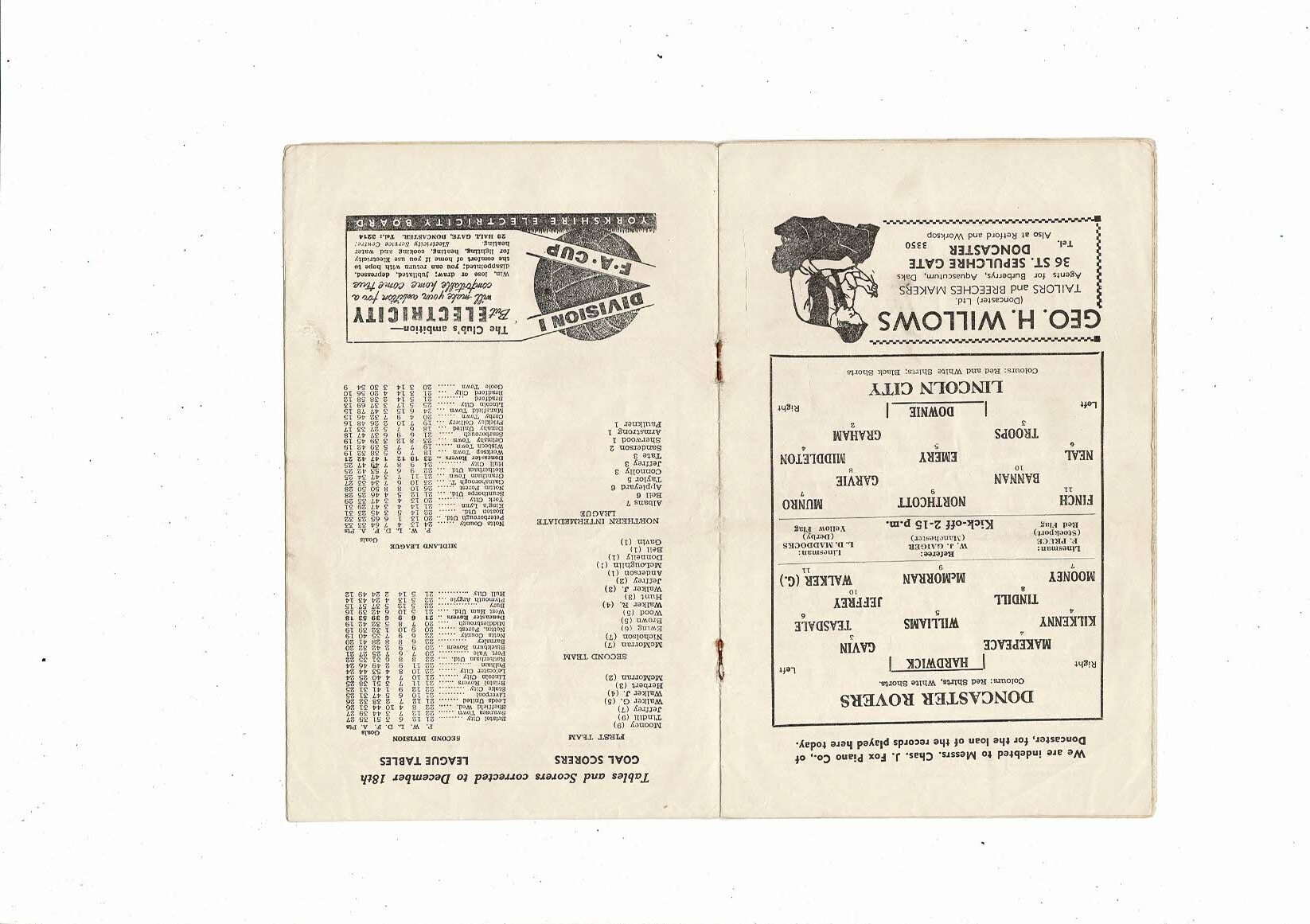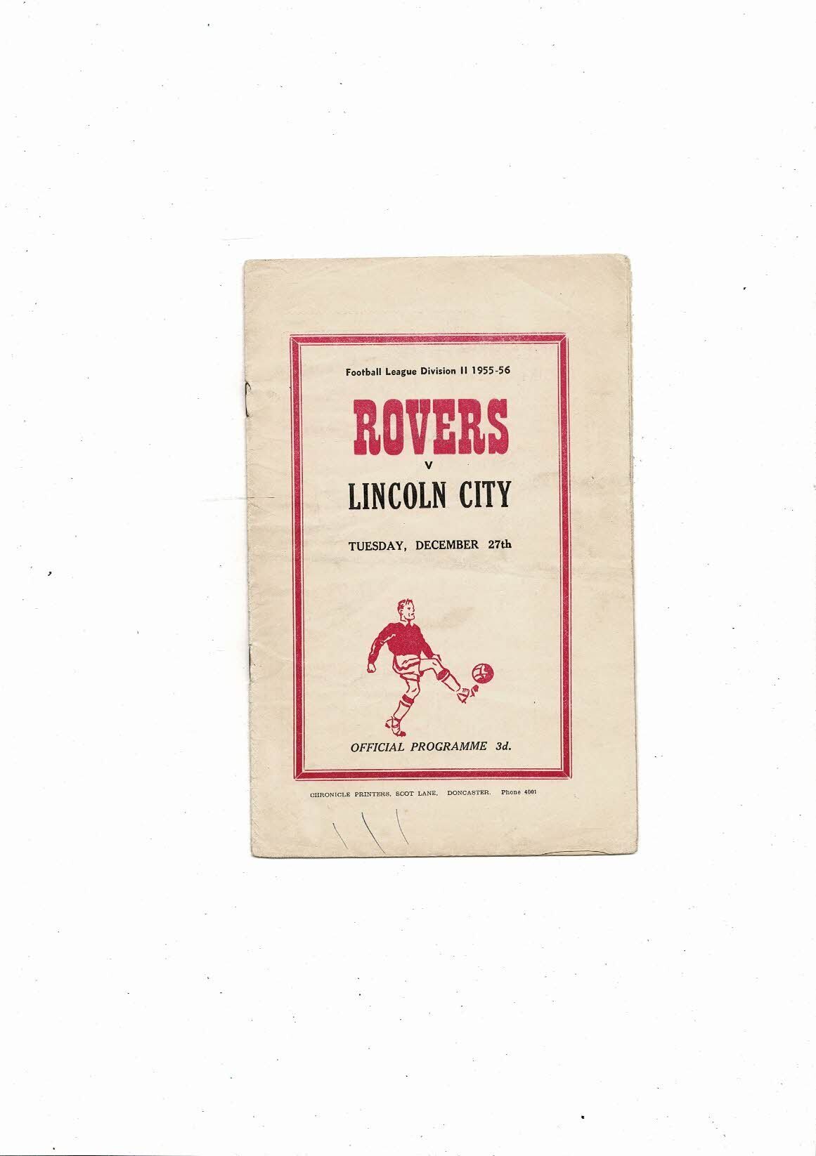 1955/56 Doncaster Rovers v Lincoln City Football Programme