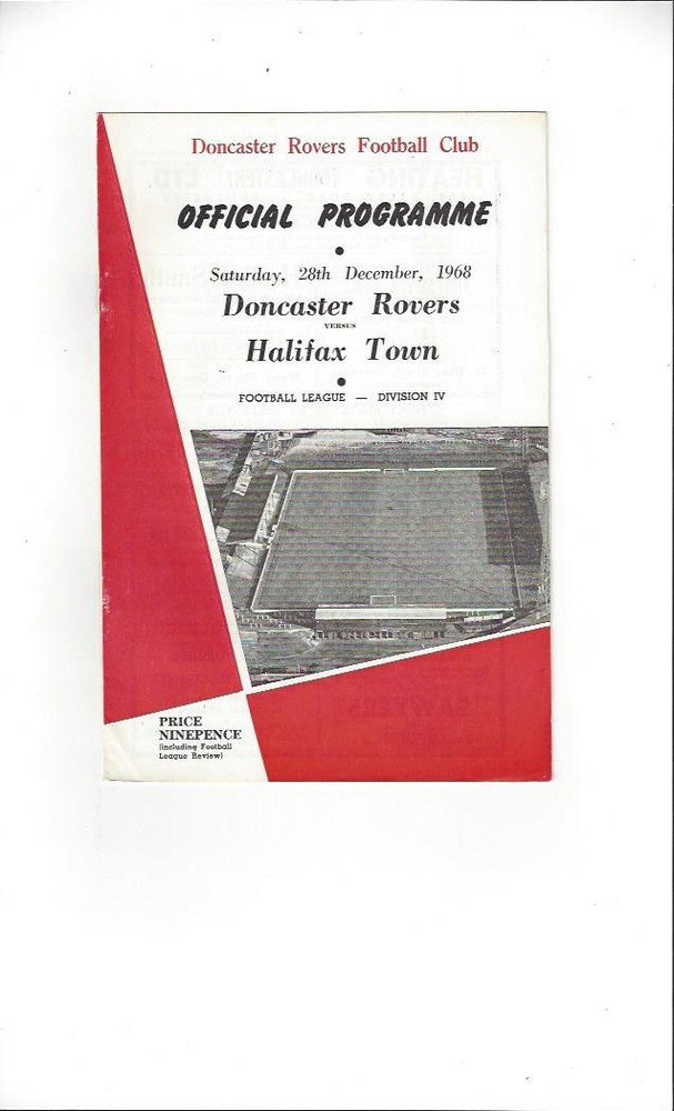 1968/69 Doncaster Rovers v Halifax Town Football Programme