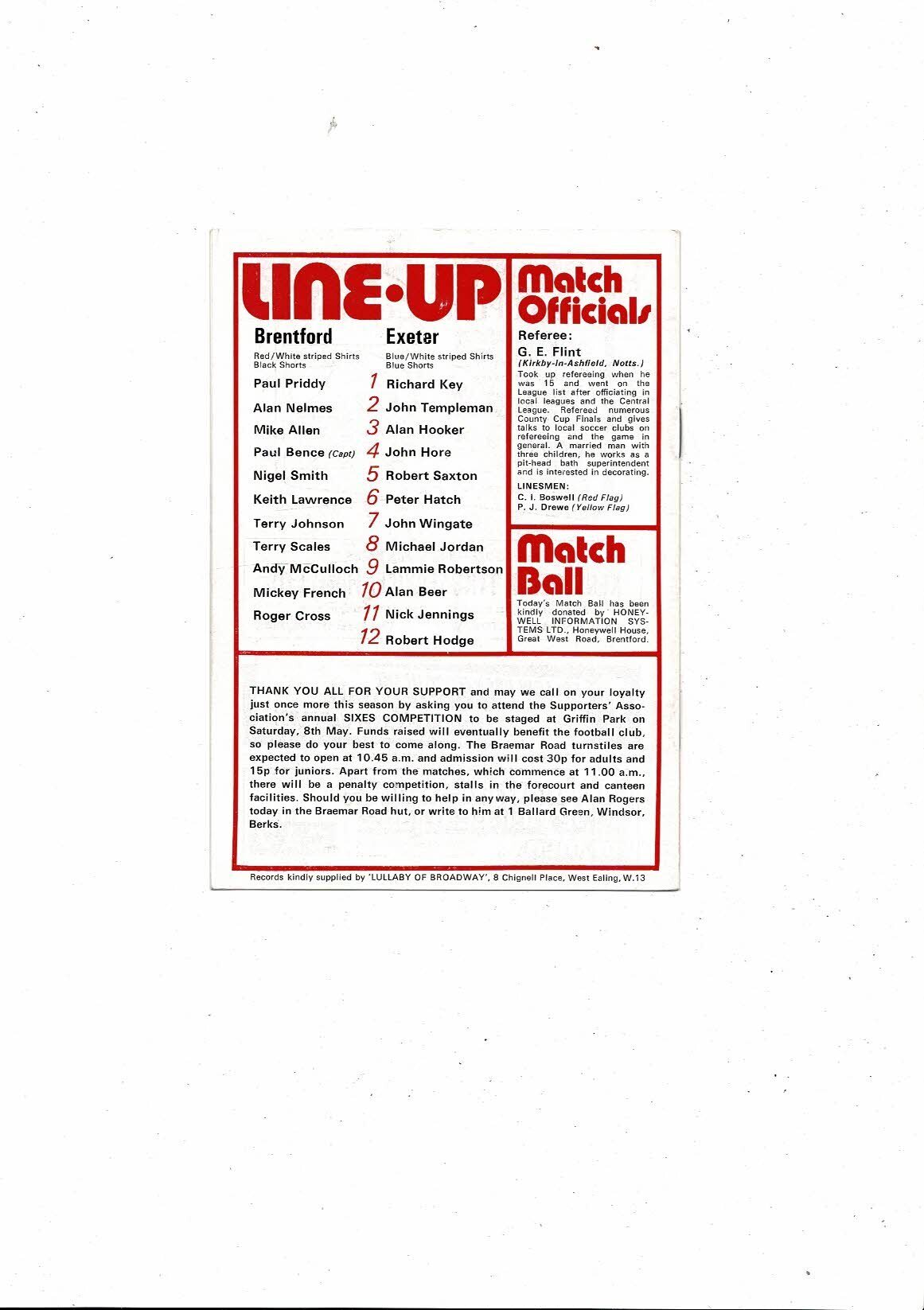 1975/76 Brentford v Exeter City Football Programme