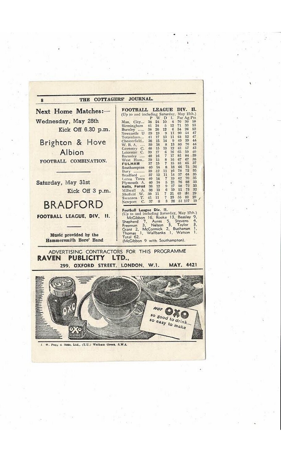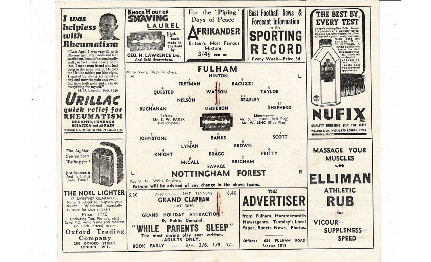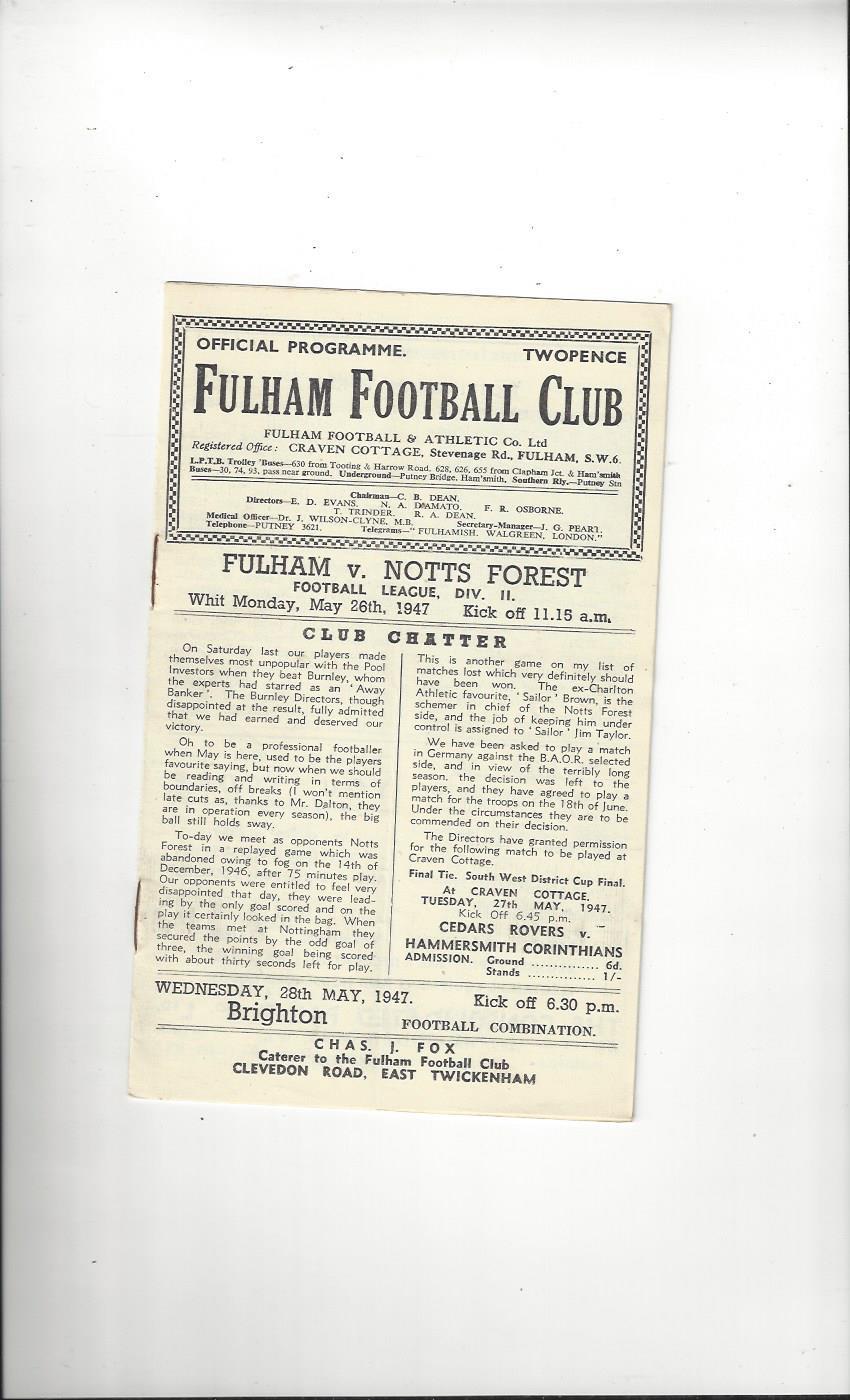 1946/47 Fulham v Nottingham Forest Football Programme