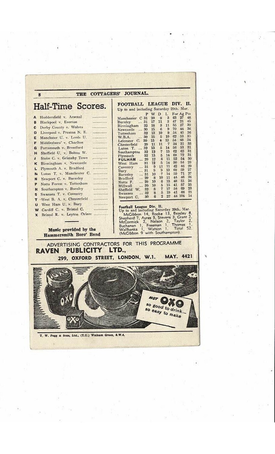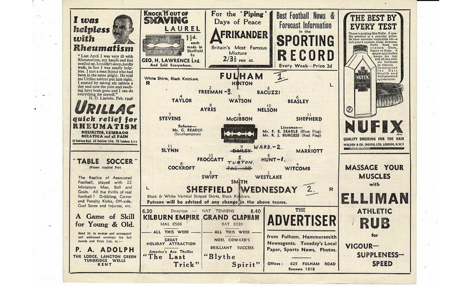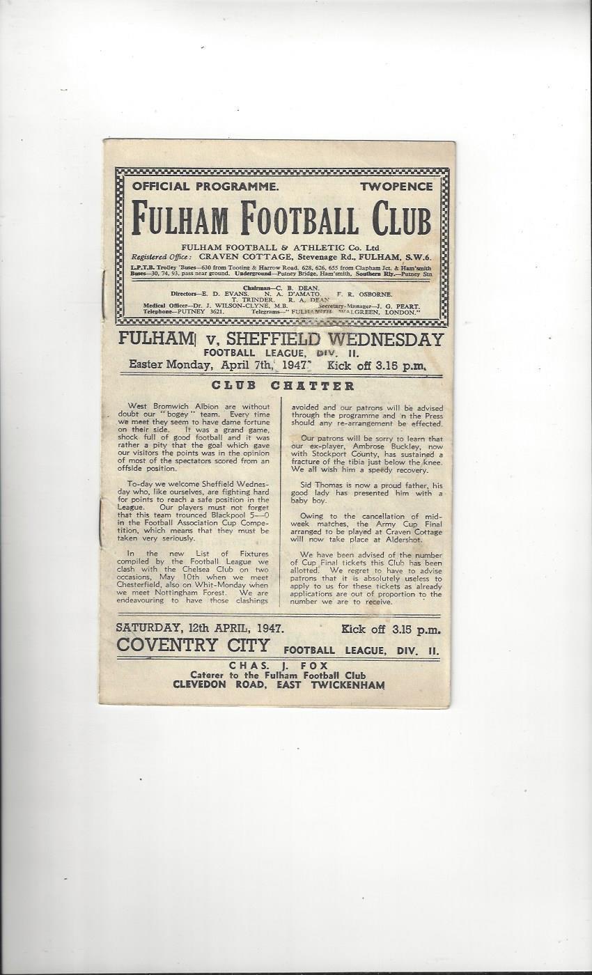 1946/47 Fulham v Sheffield Wednesday Football Programme