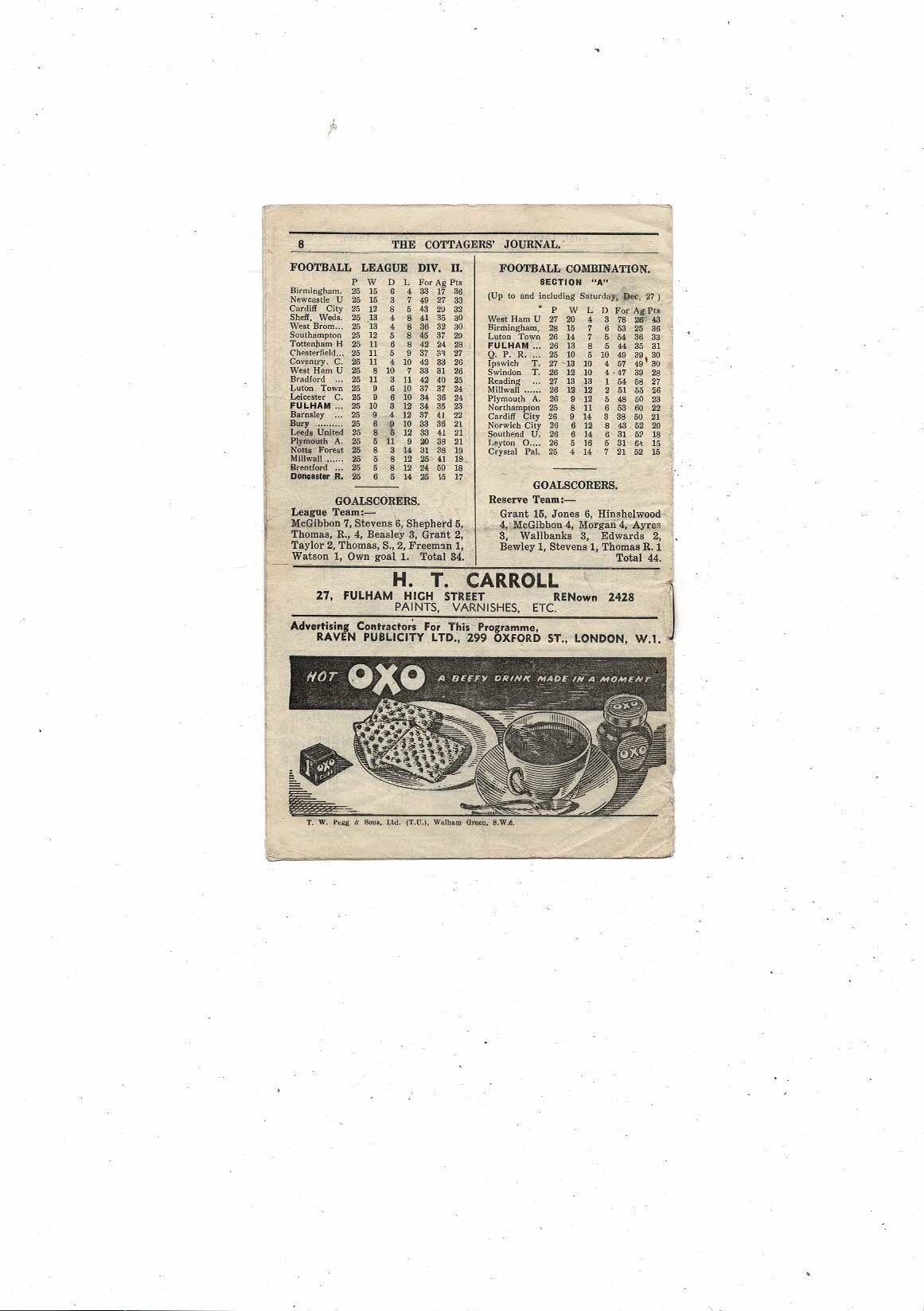 1947/48 Fulham v Doncaster Rovers FA Cup Football Programme