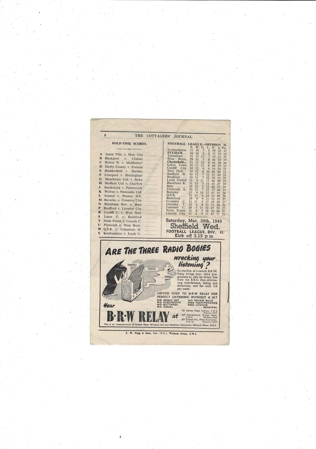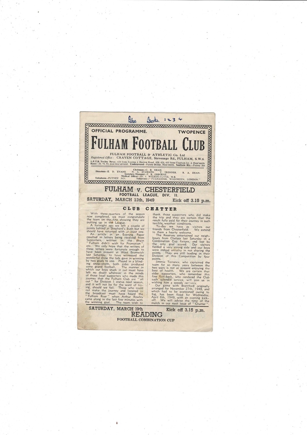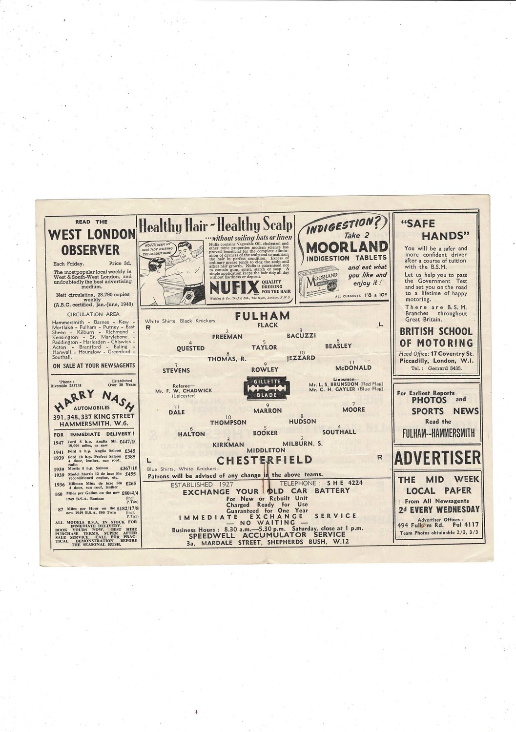 1948/49 Fulham v Chesterfield Football Programme