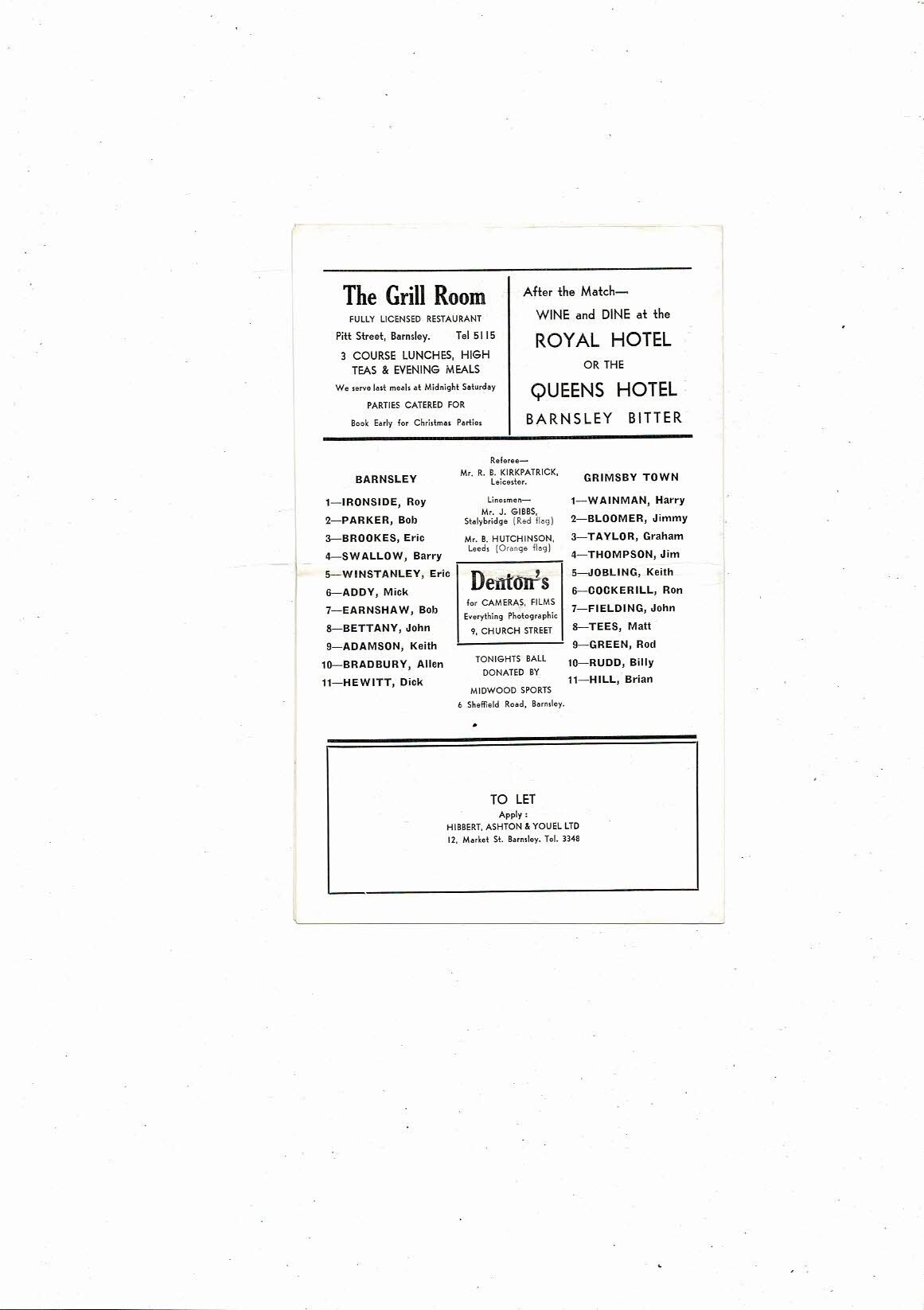 1966/67 Barnsley v Grimsby Town League Cup Football Programme