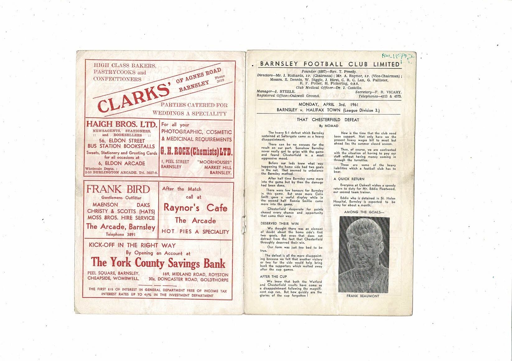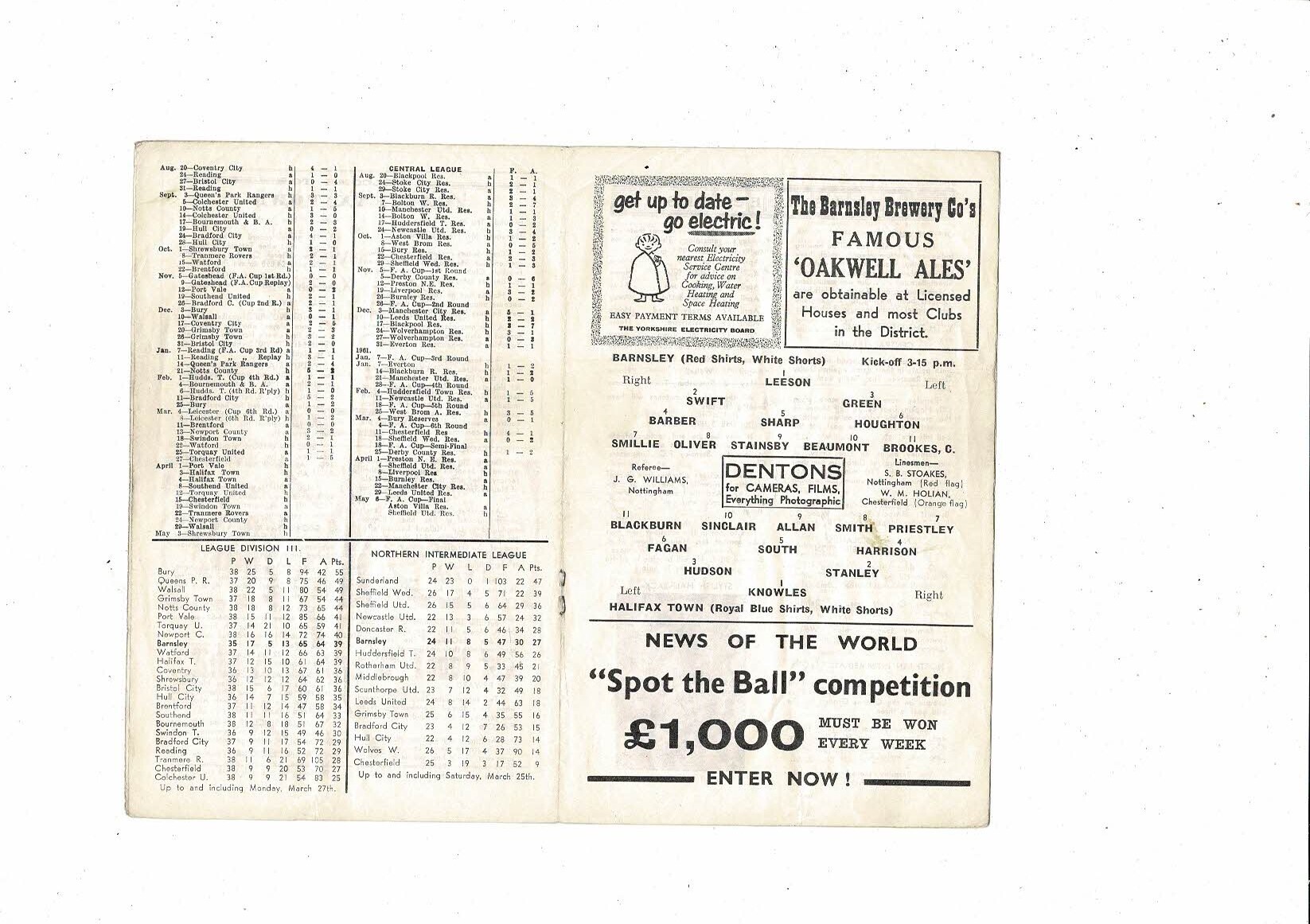 1960/61 Barnsley v Halifax Town Football Programme