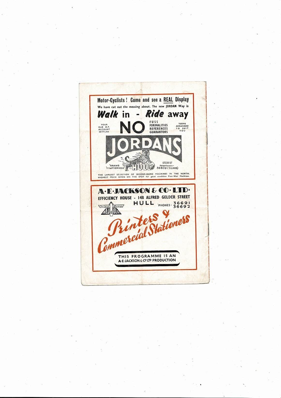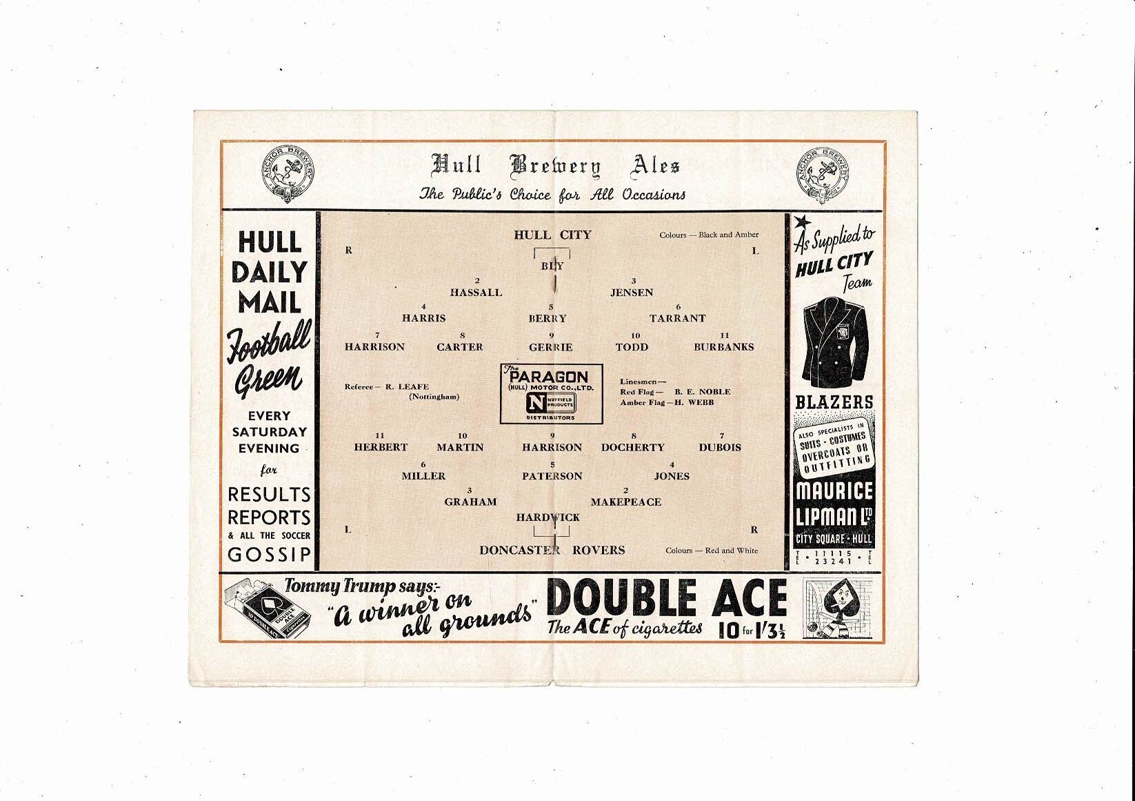 1951/52 Hull City v Doncaster Rovers Football Programme