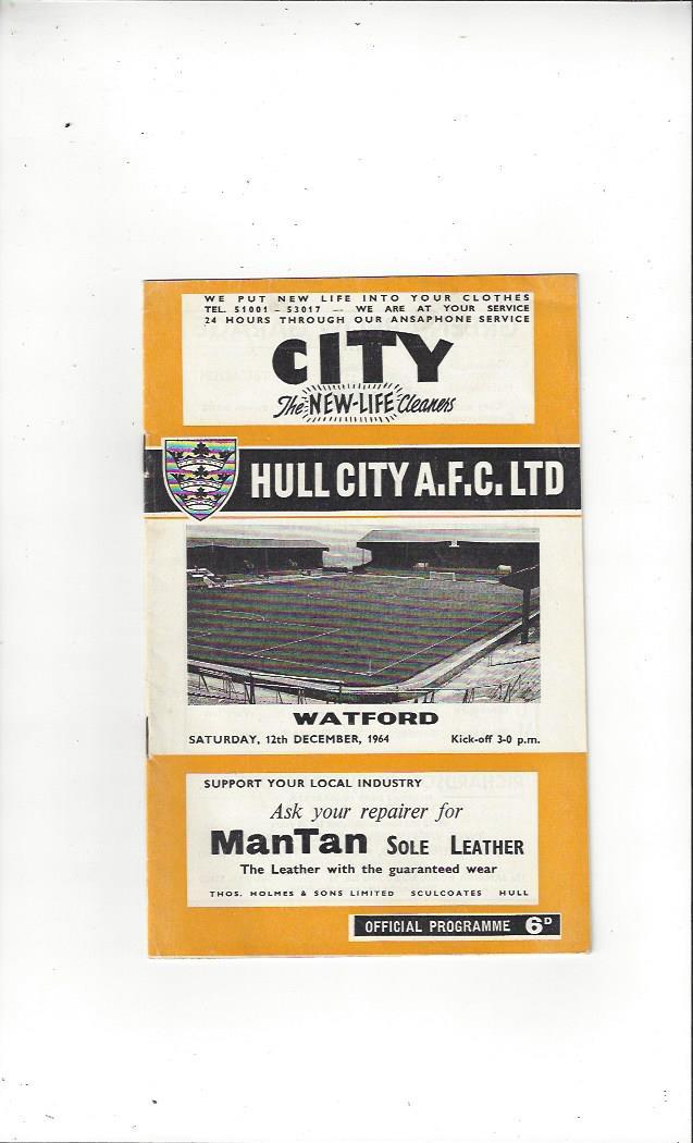 1964/65 Hull City v Watford Football Programme