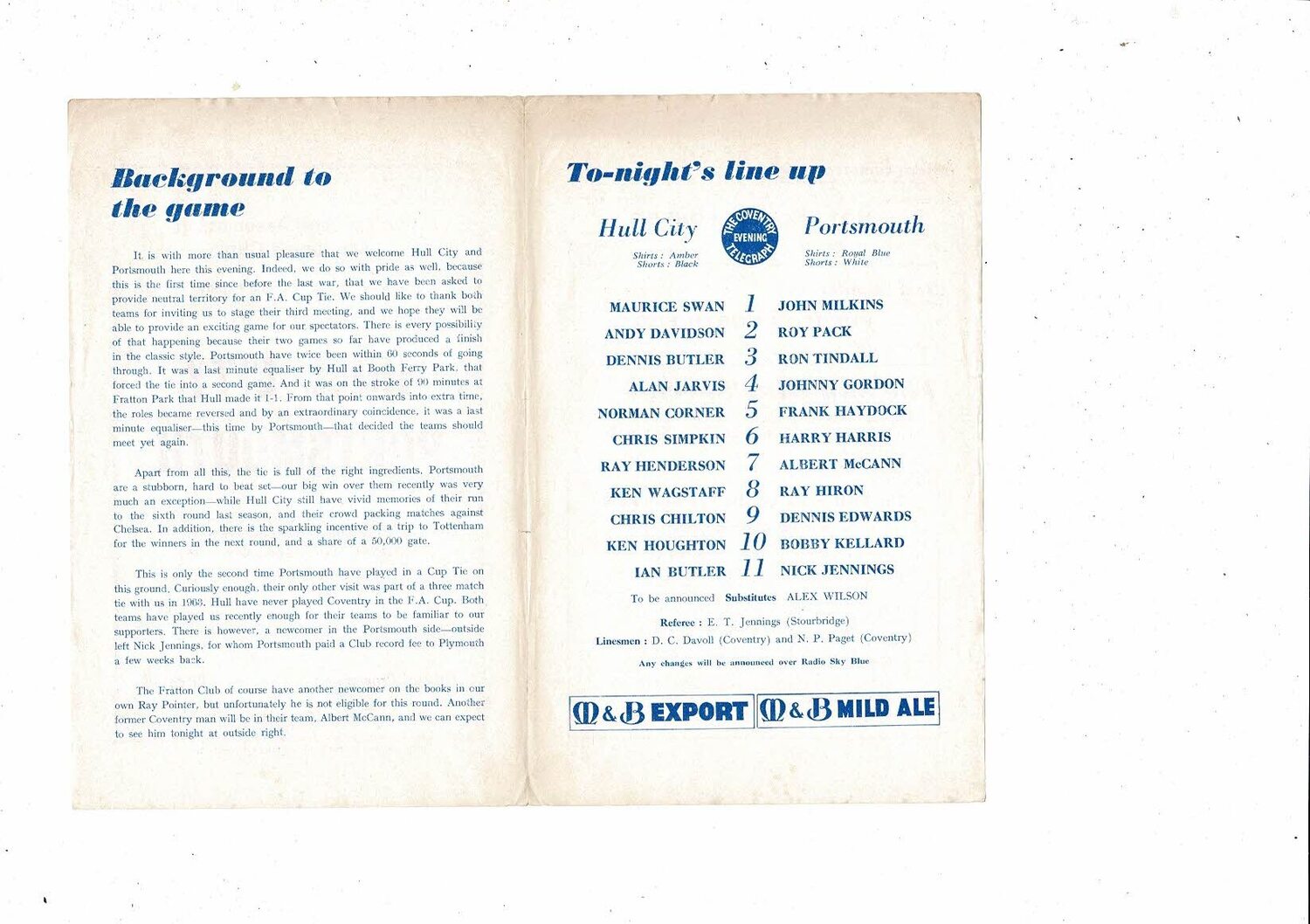1966/67 Hull City v Portsmouth FA Cup Replay Football Programme @ Coventry City
