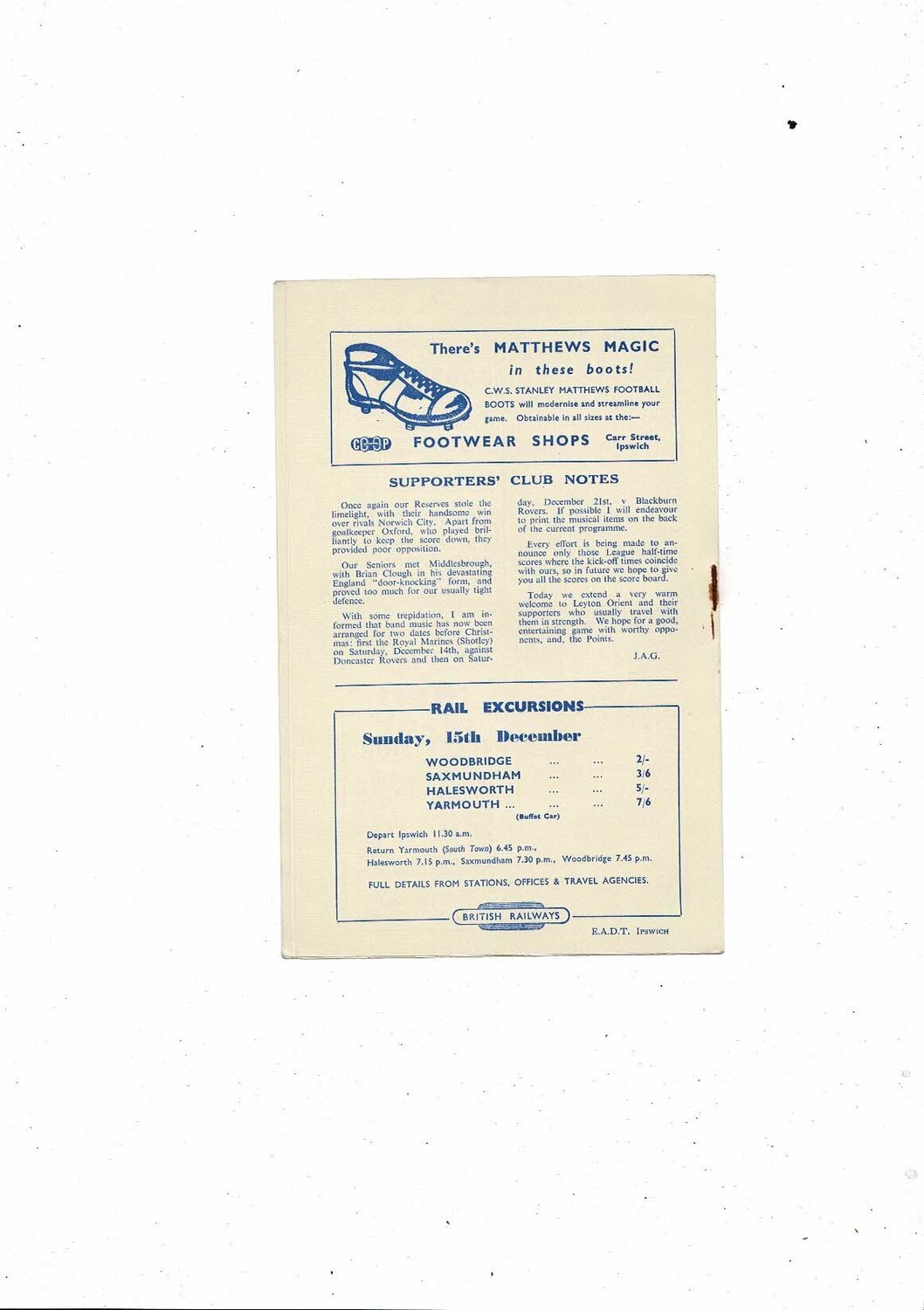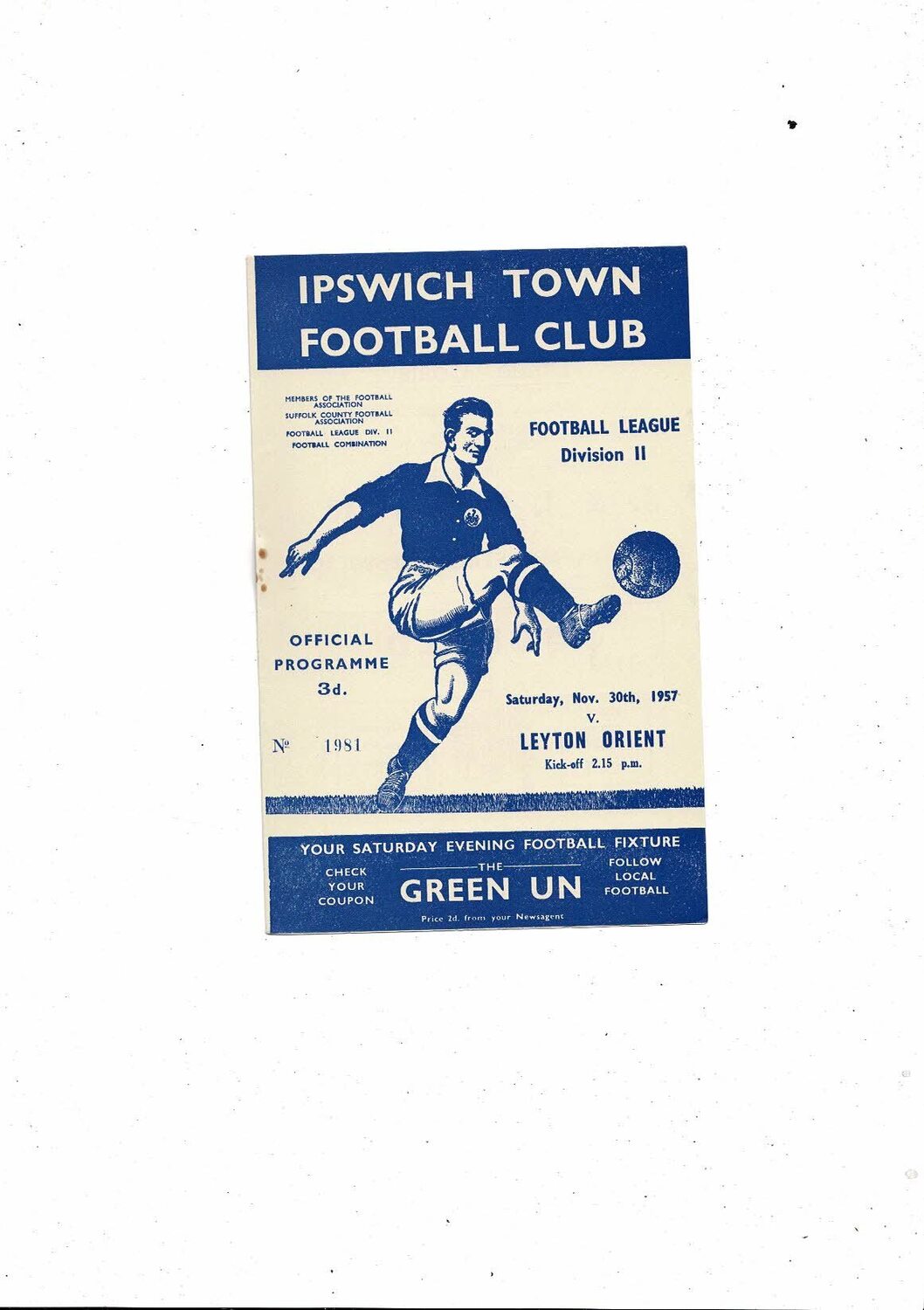 1957/58 Ipswich Town v Leyton Orient Football Programme
