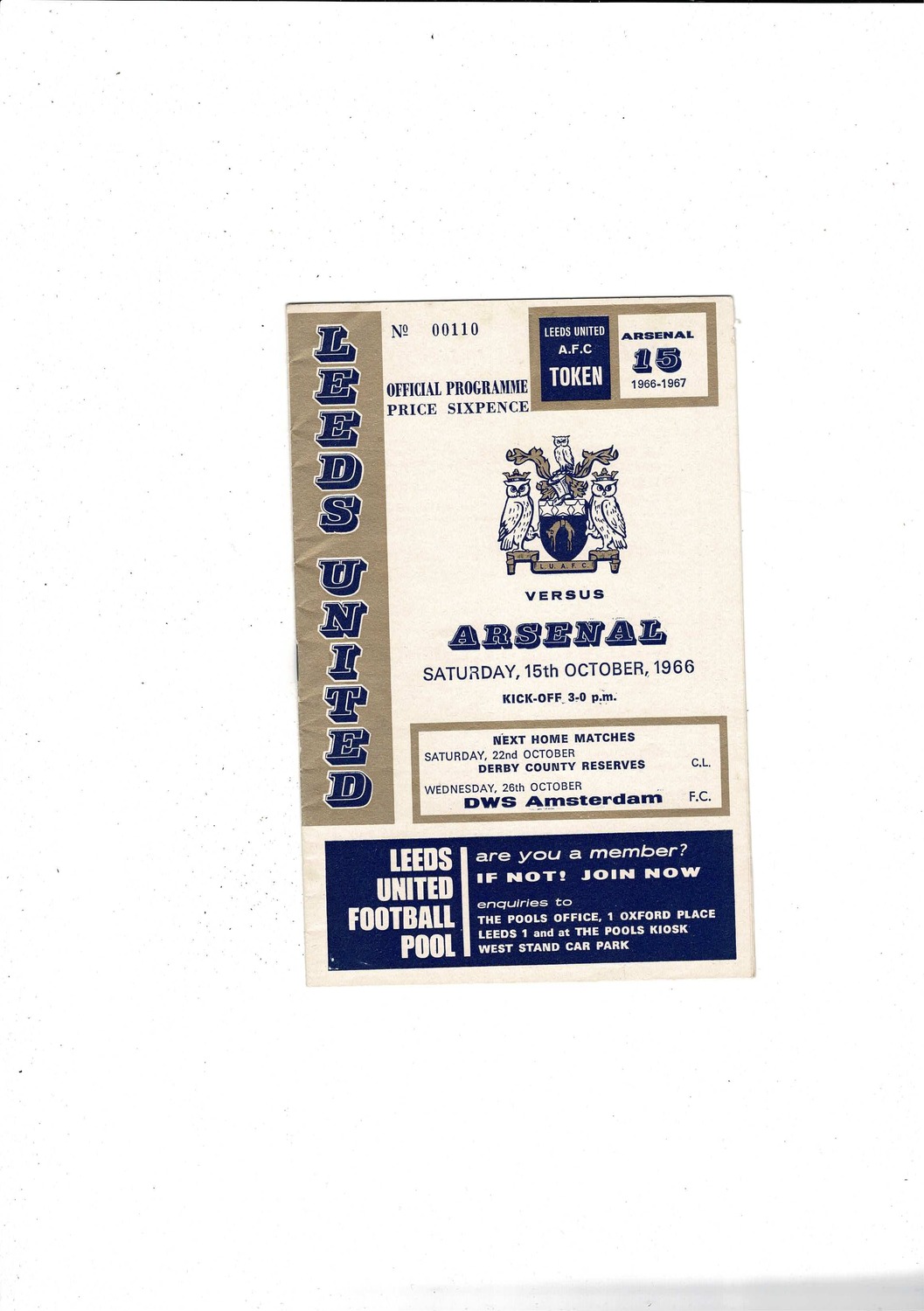 1966/67 Leeds United v Arsenal Football Programme