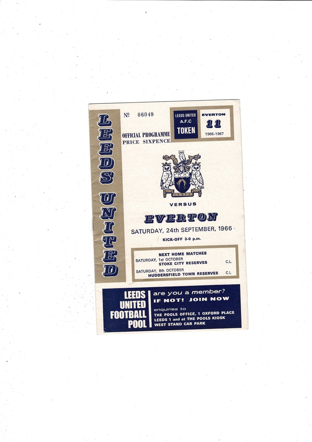 1966/67 Leeds United v Everton Football Programme