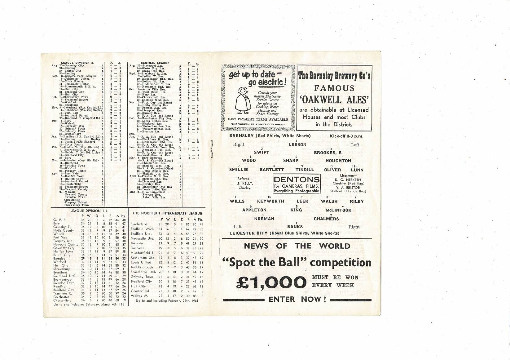 1960/61 Barnsley v Leicester City FA Cup Football Programme