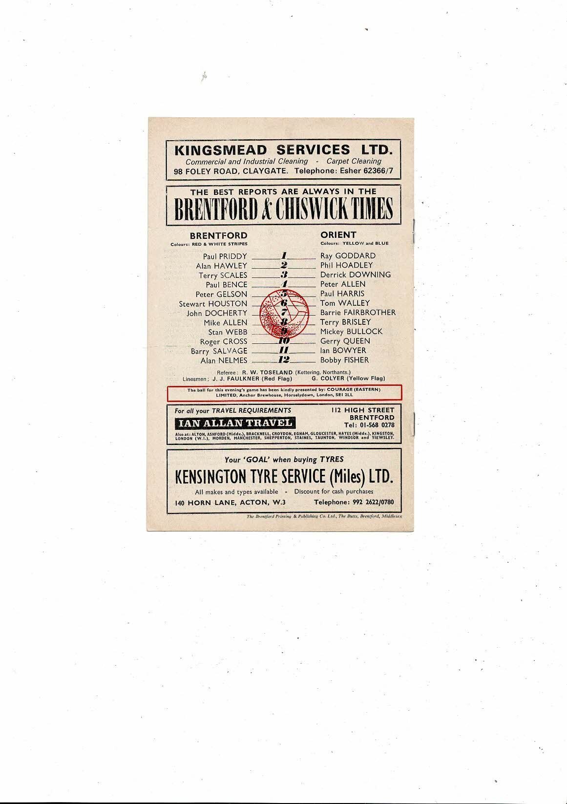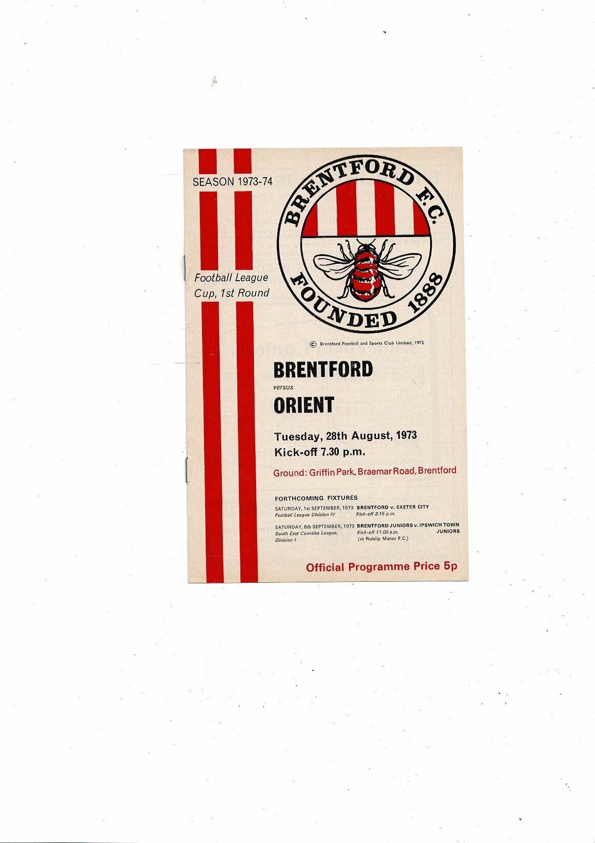 1973/74 Brentford v Leyton Orient League Cup Football Programme