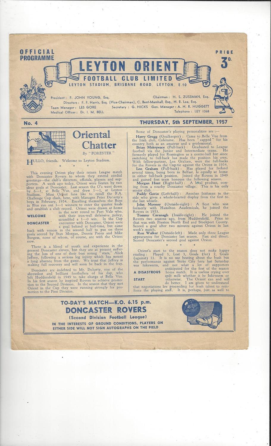 1957/58 Leyton Orient v Doncaster Rovers Football Programme