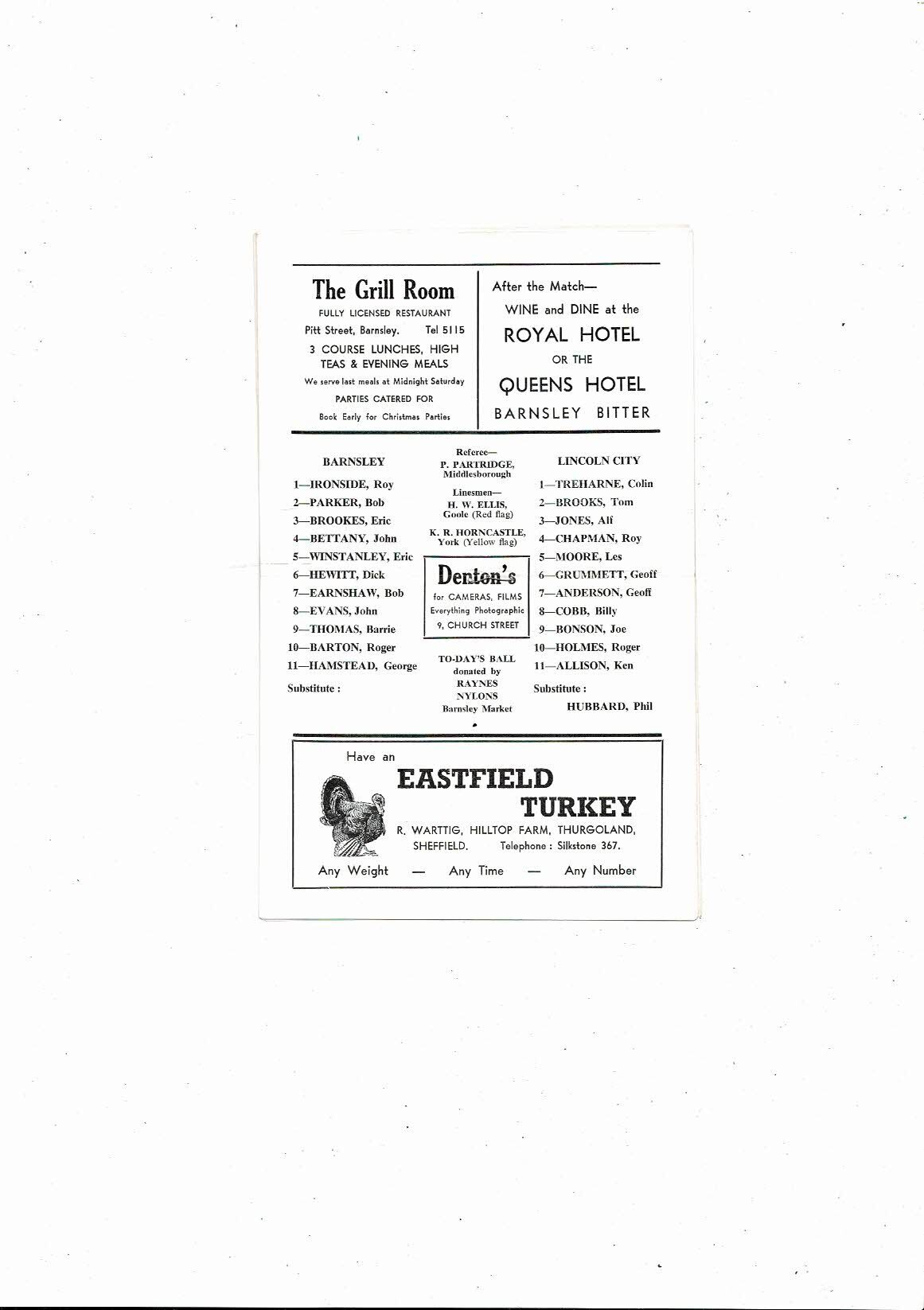 1966/67 Barnsley v Lincoln City Football Programme