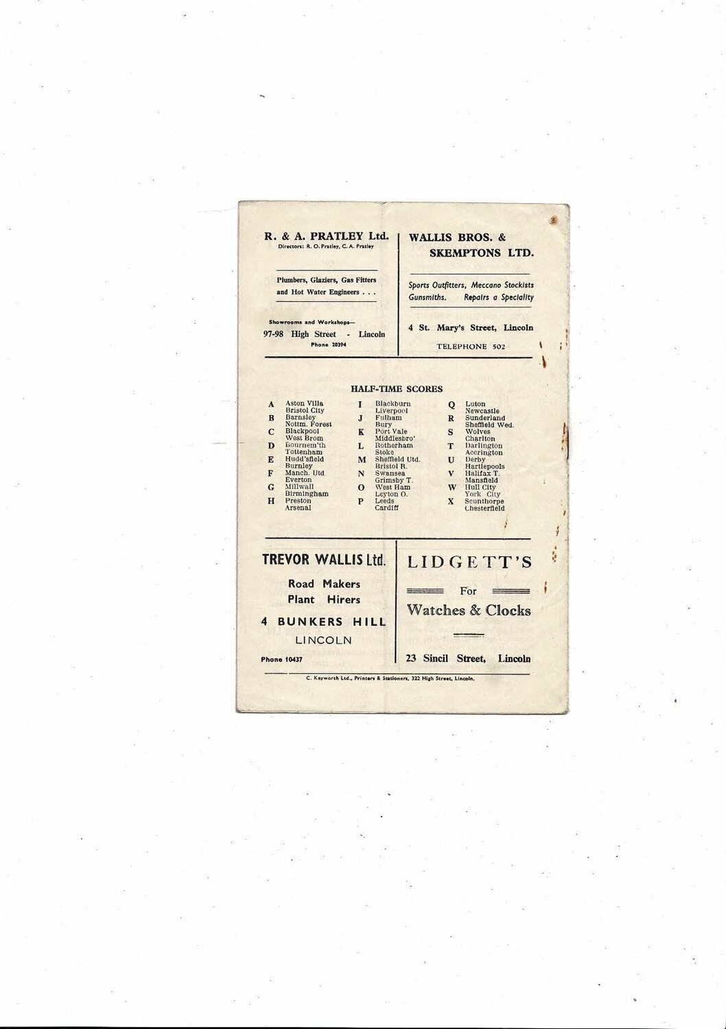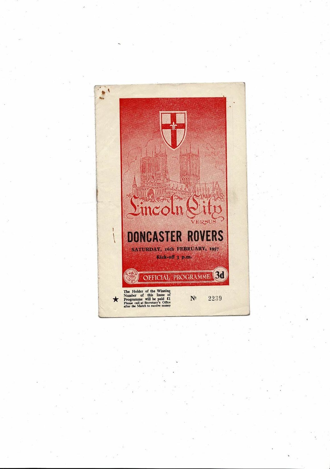 1956/57 Lincoln City v Doncaster Rovers Football Programme