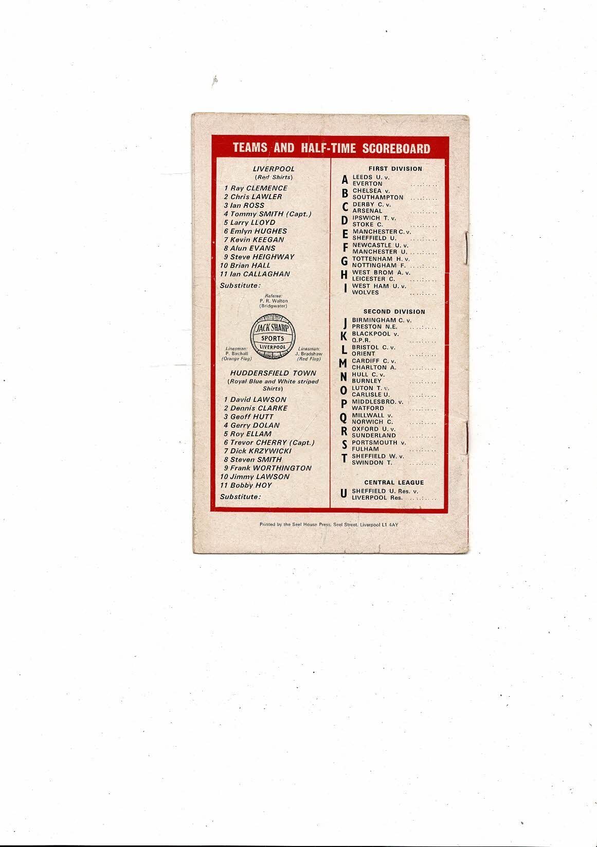 1971/72 Liverpool v Huddersfield Town Football Programme