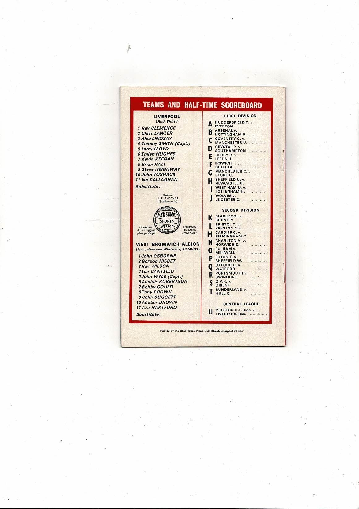1971/72 Liverpool v West Bromwich Albion Football Programme + League Review
