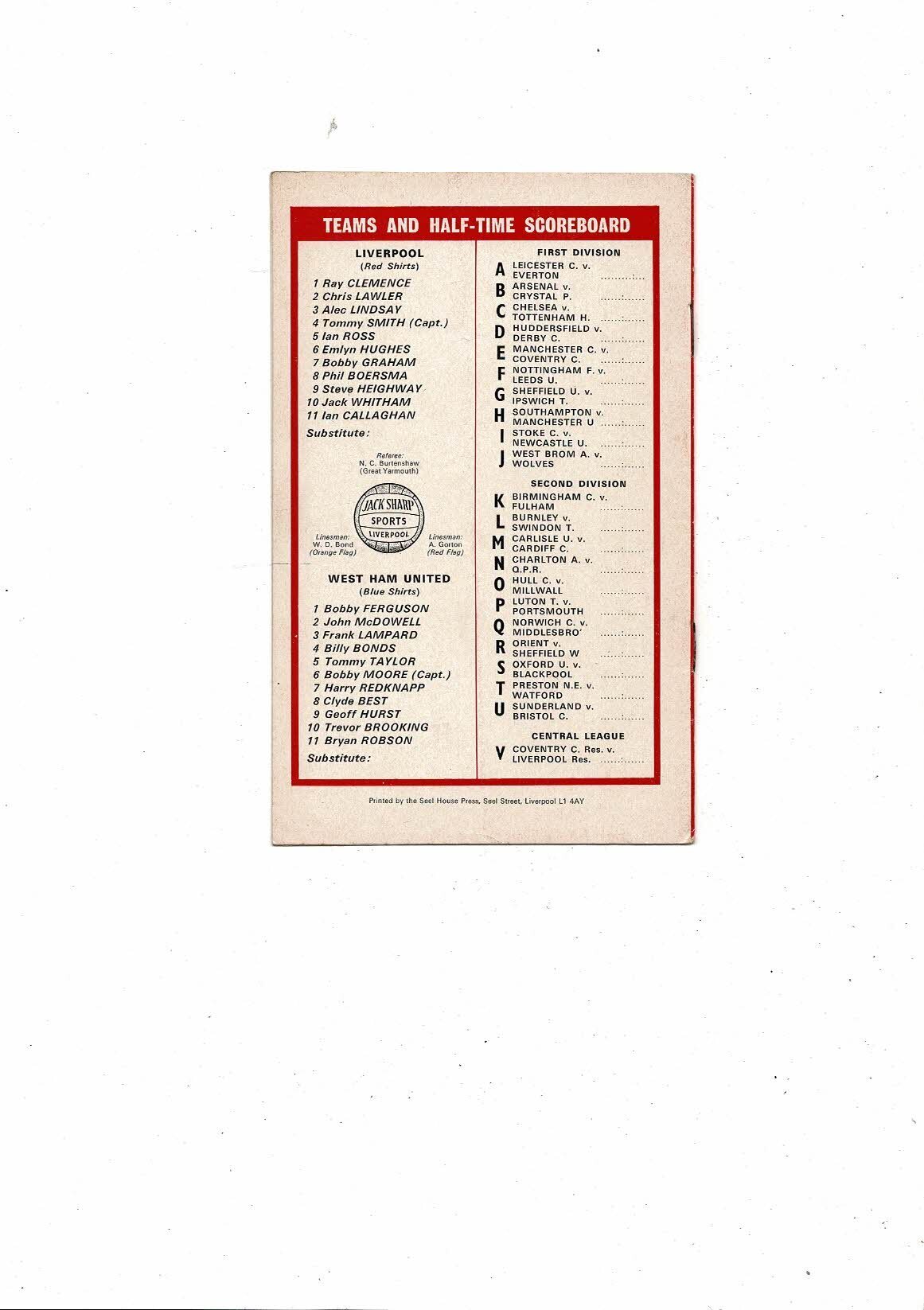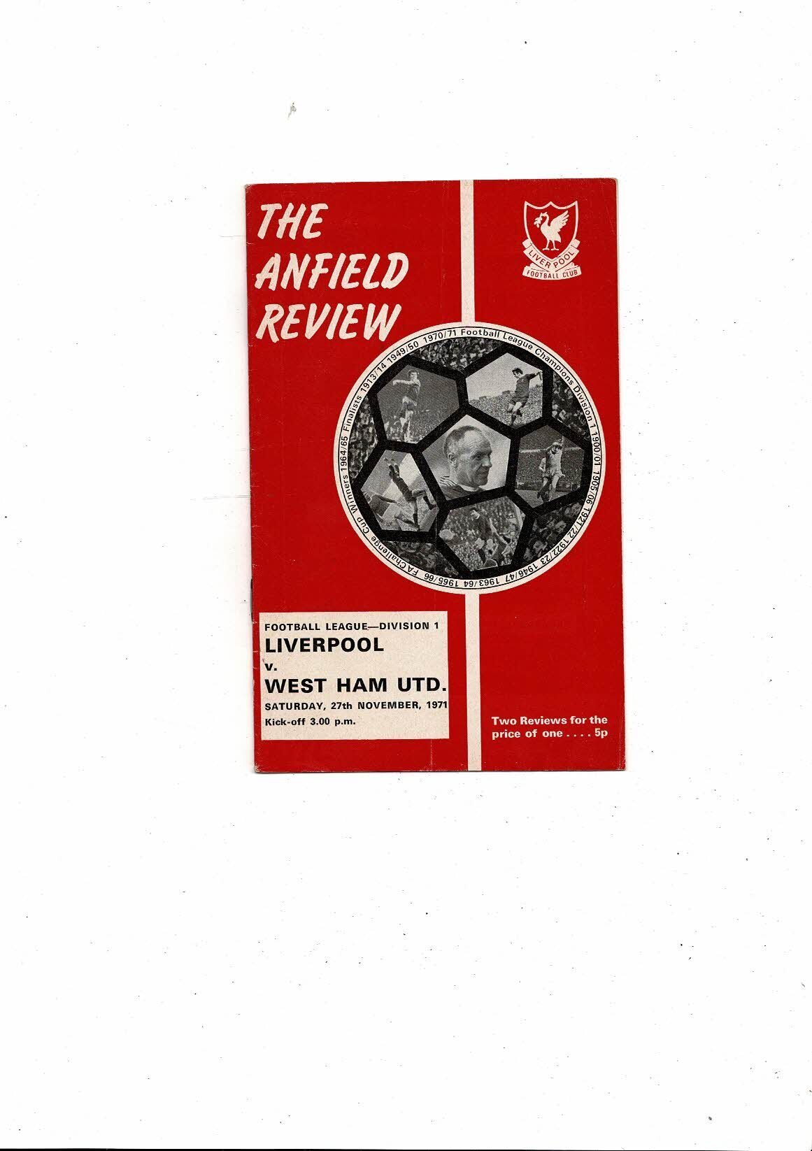 1971/72 Liverpool v West Ham United Football Programme