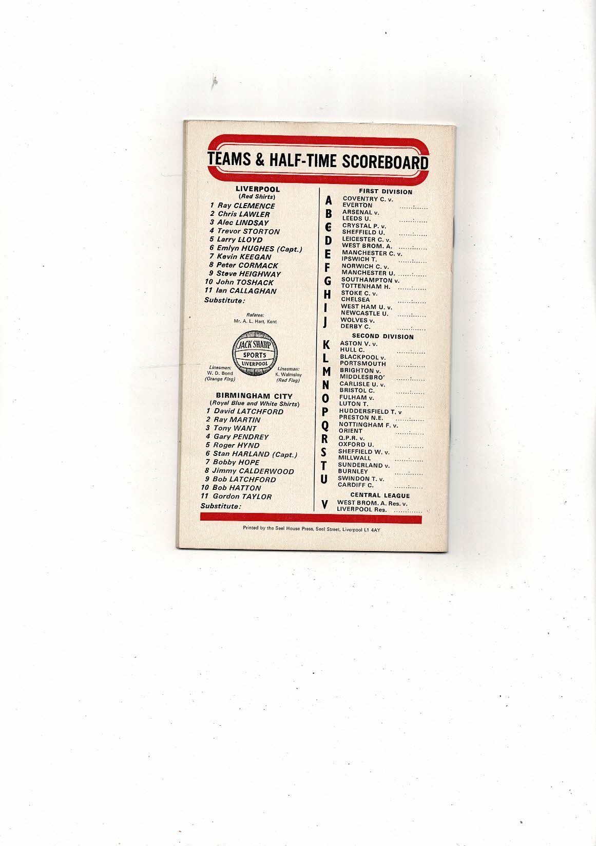 1972/73 Liverpool v Birmingham City Football Programme + League Review