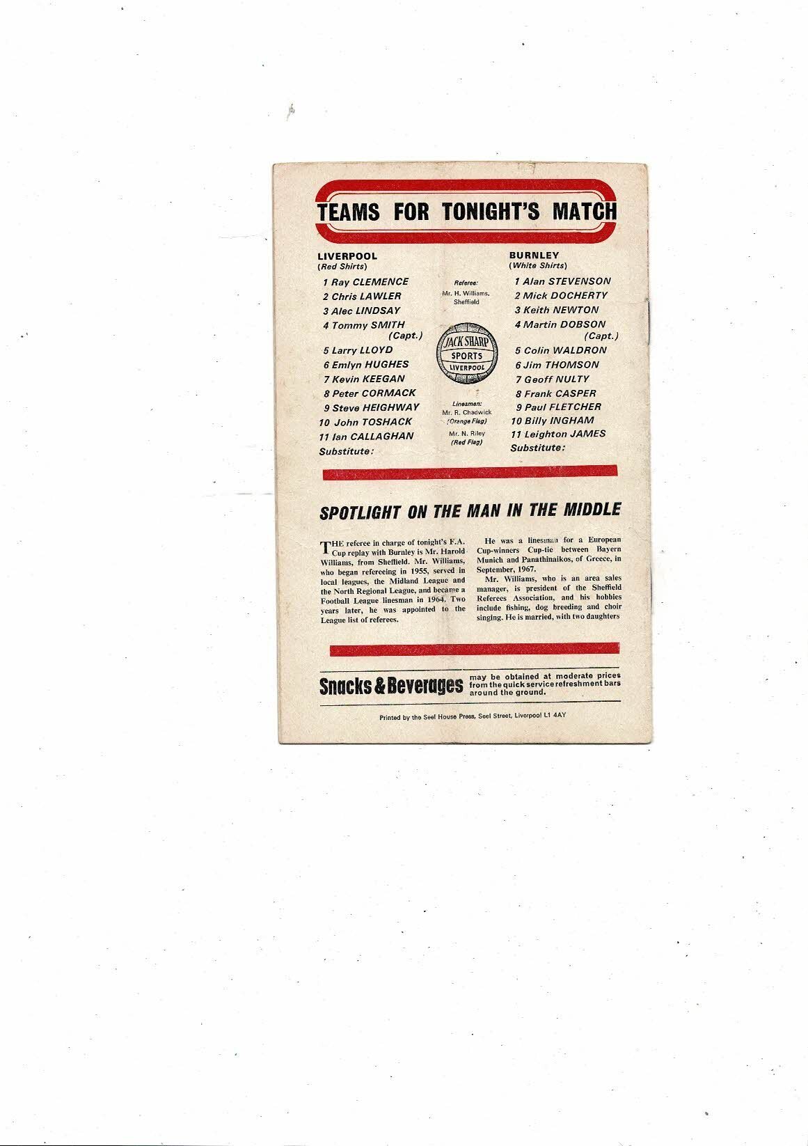 1972/73 Liverpool v Burnley FA Cup Football Programme