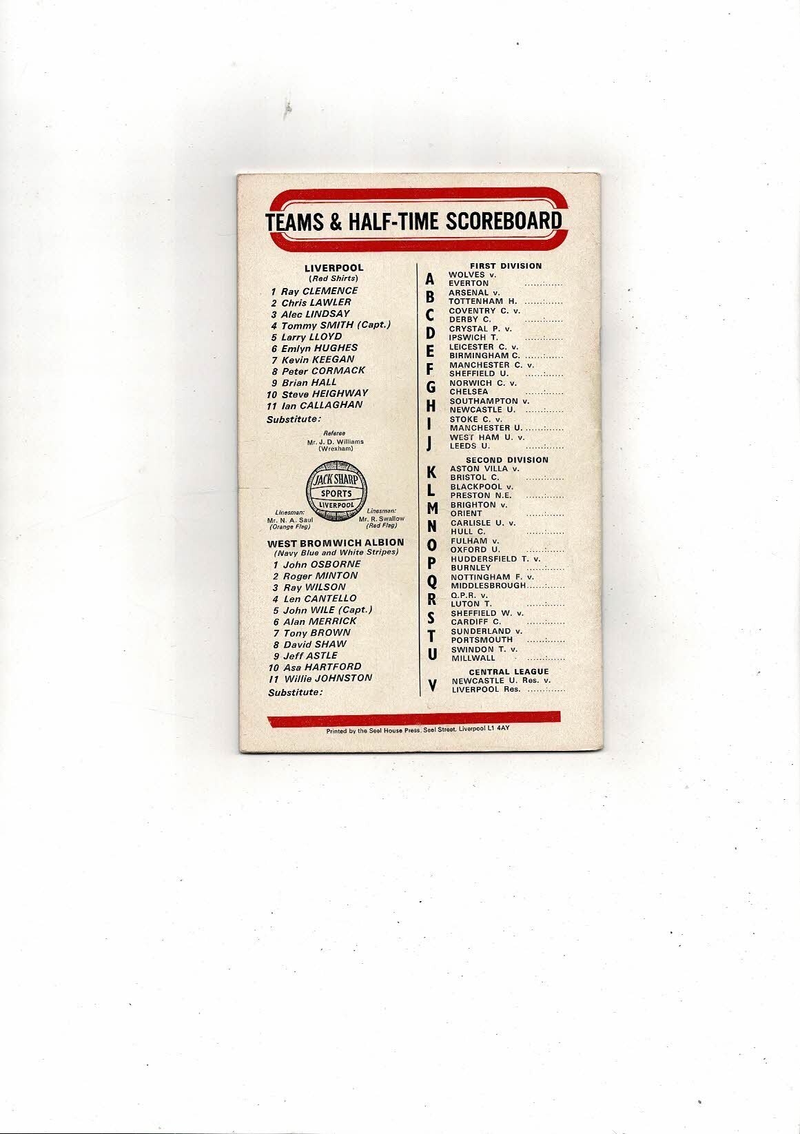 1972/73 Liverpool v West Bromwich Albion Football Programme + League Review