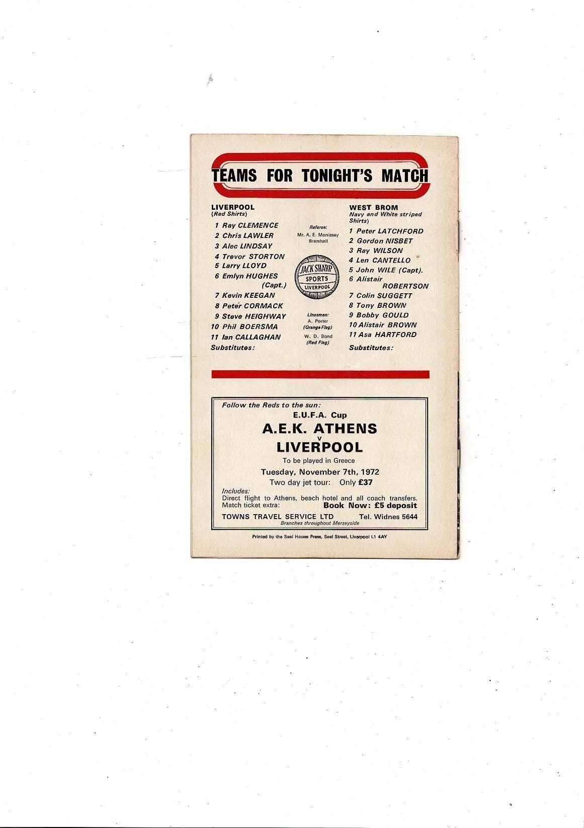 1972/73 Liverpool v West Bromwich Albion League Cup Replay Football Programme