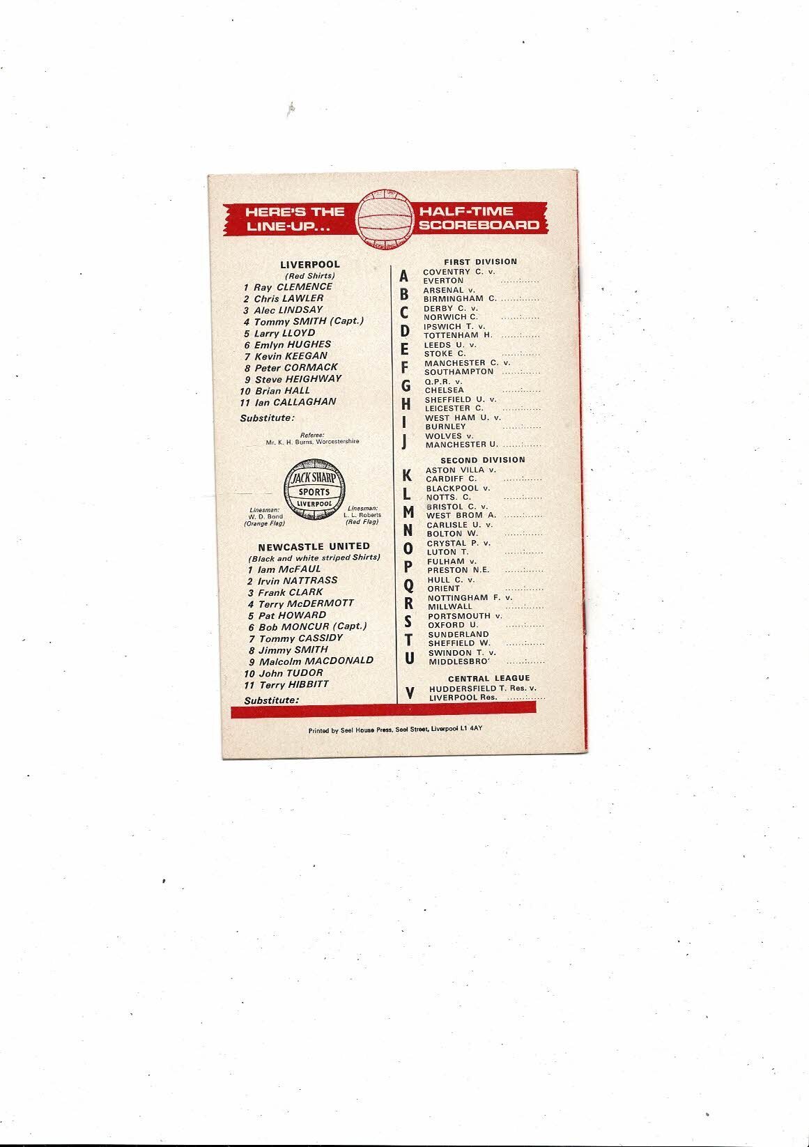 1973/74 Liverpool v Newcastle United Football Programme