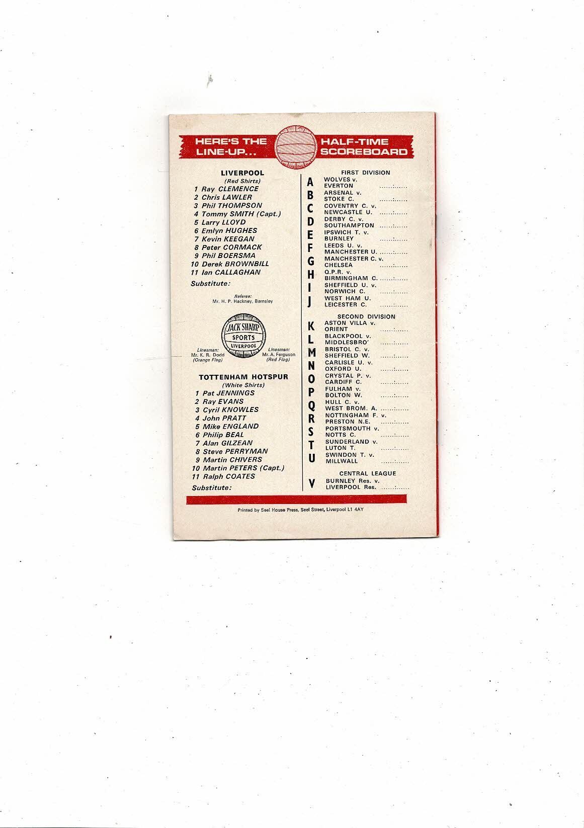 1973/74 Liverpool v Tottenham Hotspur Football Programme + League Review