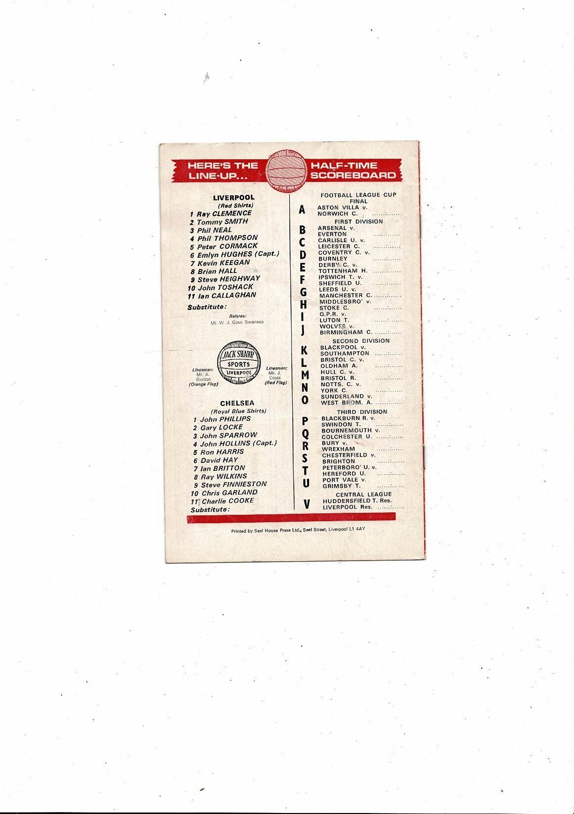 1974/75 Liverpool v Chelsea Football Programme