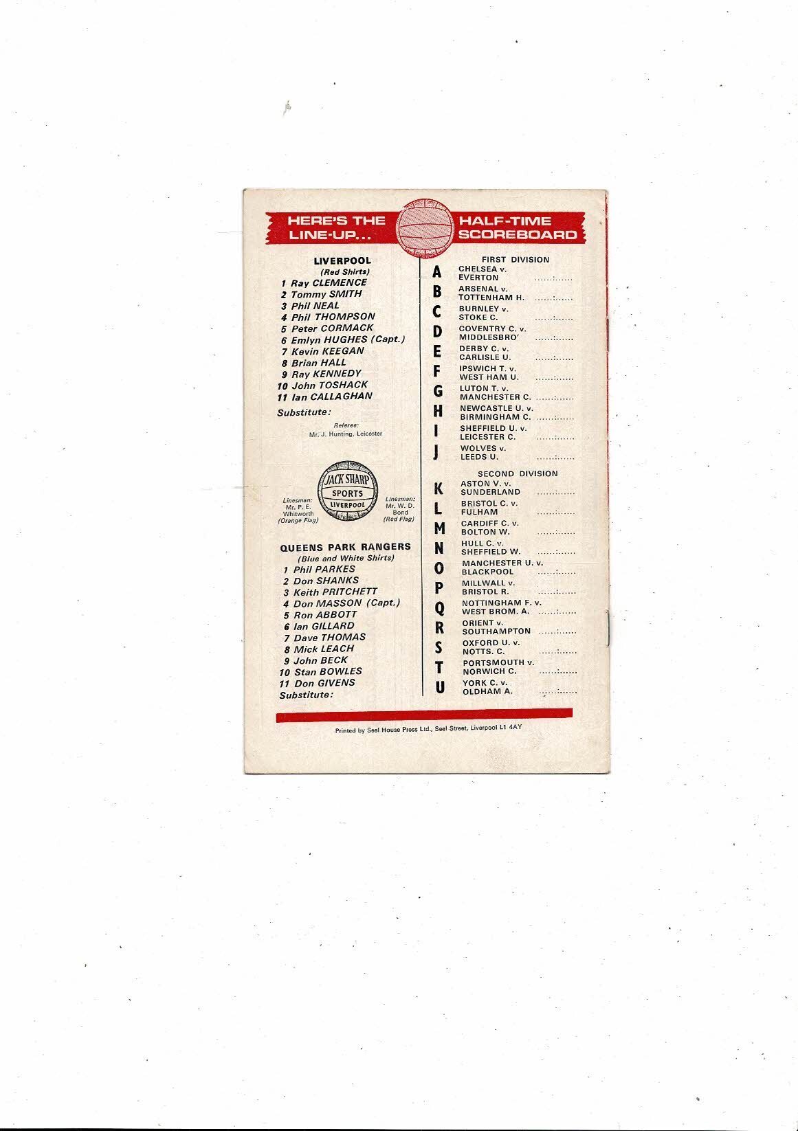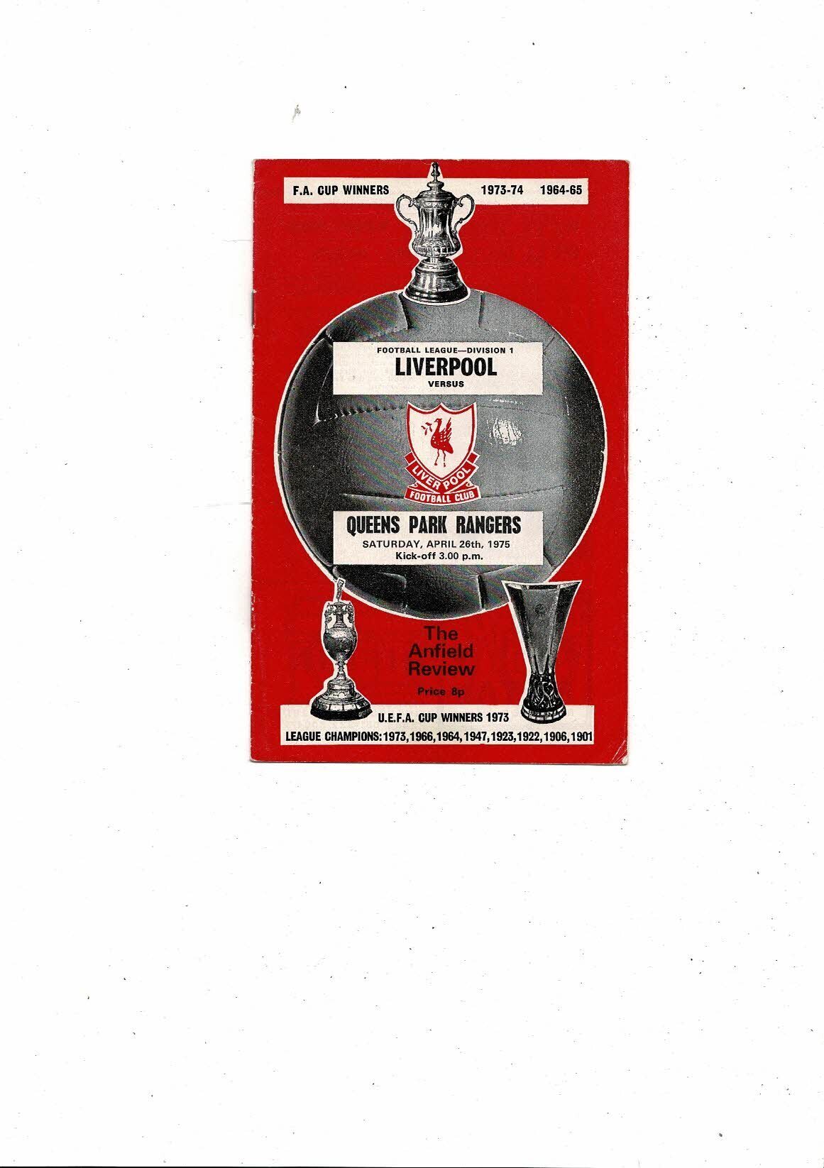 1974/75 Liverpool v Queens Park Rangers Football Programme