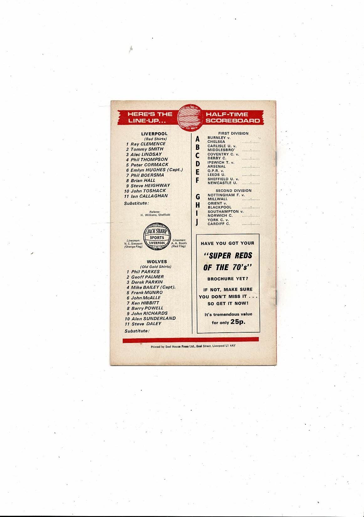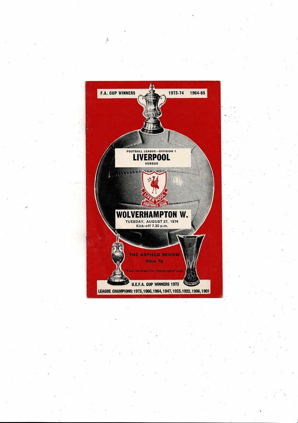 1974/75 Liverpool v Wolves Football Programme