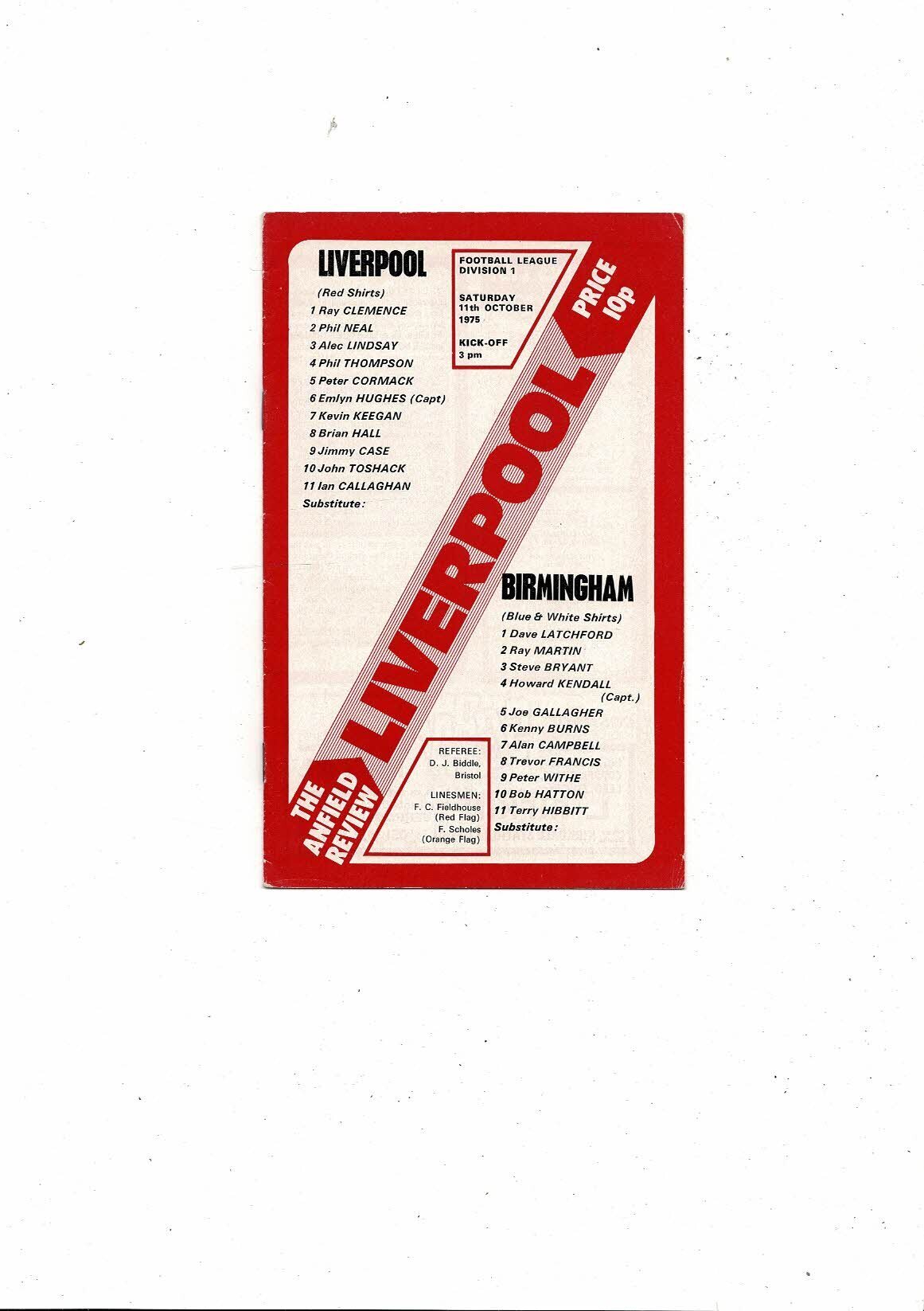 1975/76 Liverpool v Birmingham City Football Programme