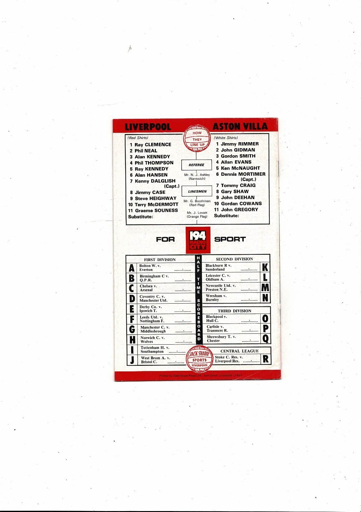 1978/79 Liverpool v Aston Villa Football Programme. January