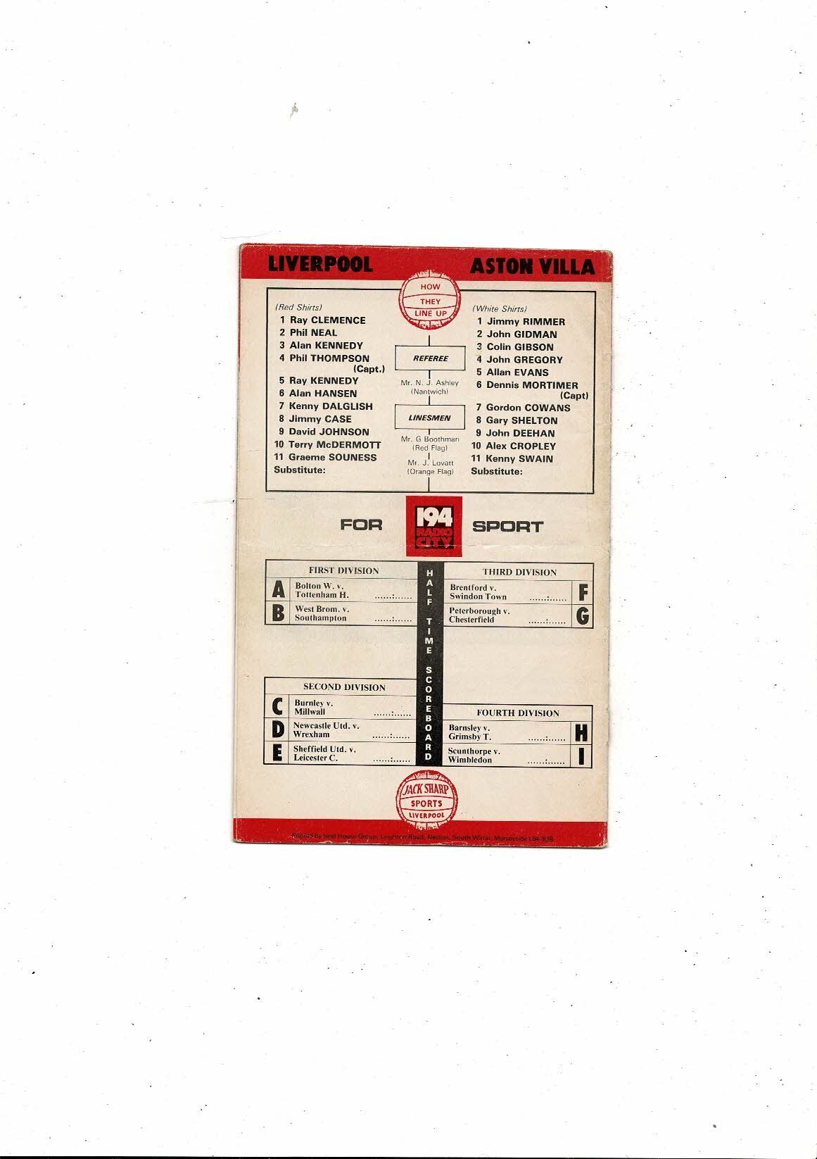 1978/79 Liverpool v Aston Villa Football Programme. May