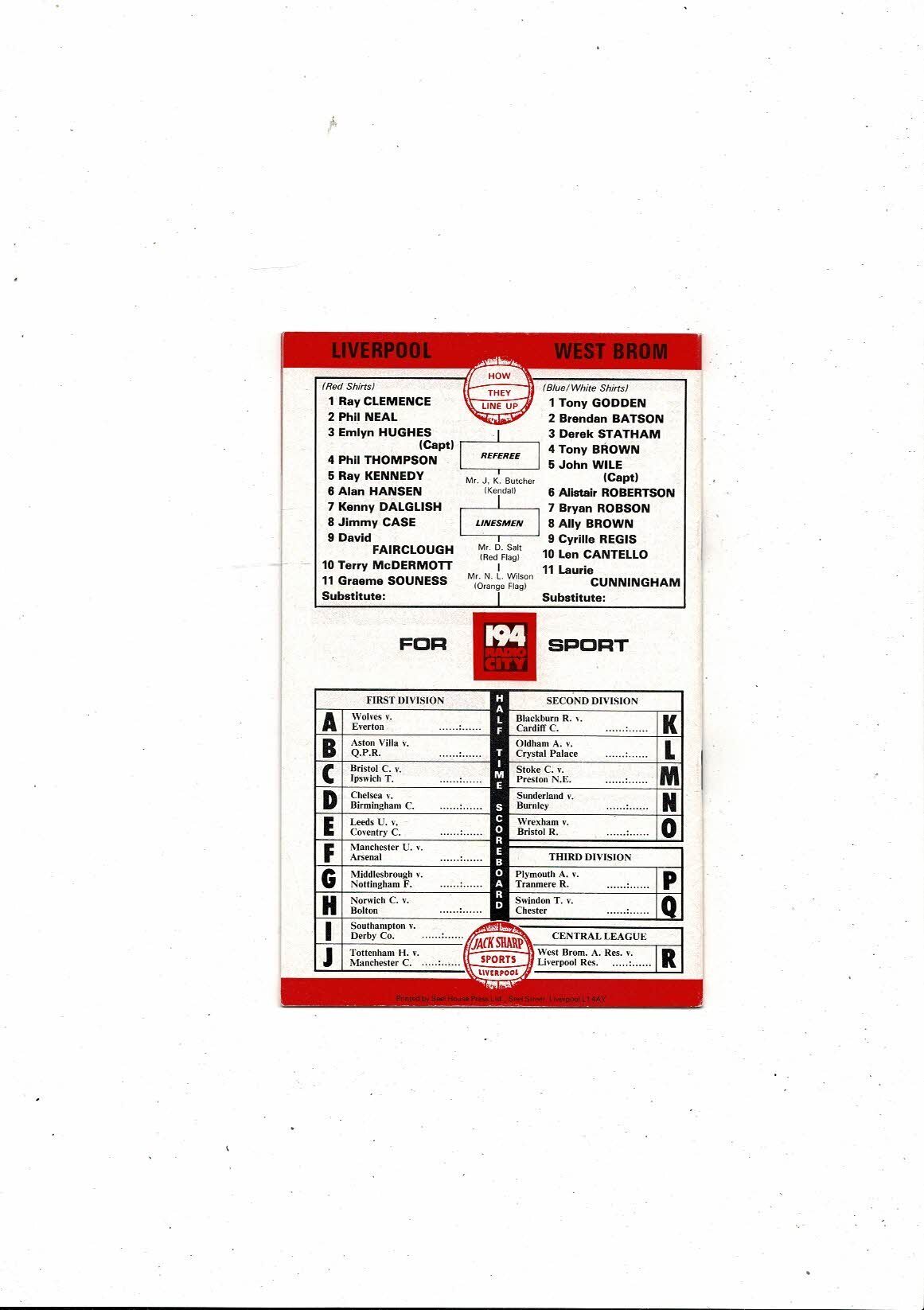 1978/79 Liverpool v West Bromwich Albion Football Programme