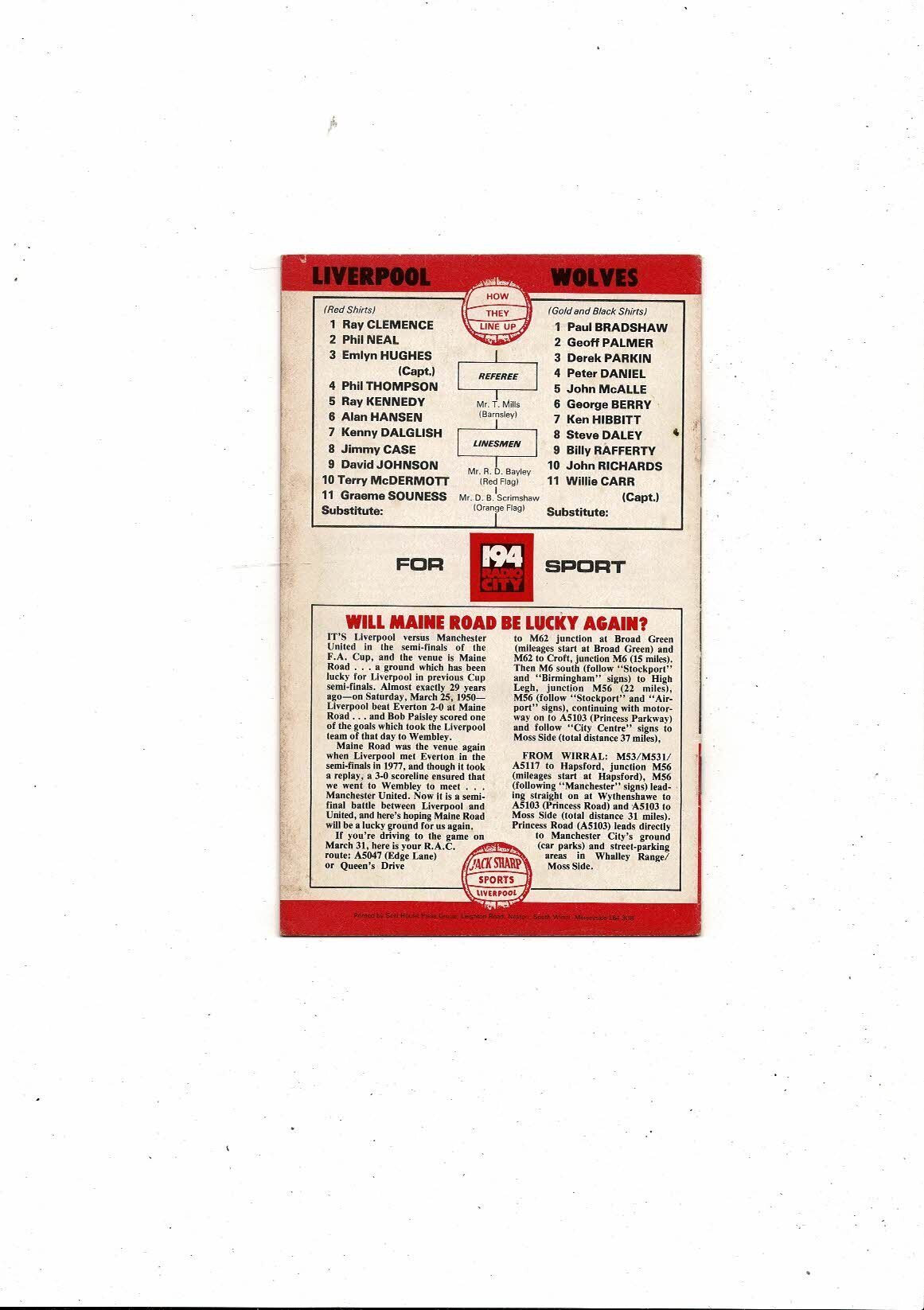 1978/79 Liverpool v Wolves Football Programme March