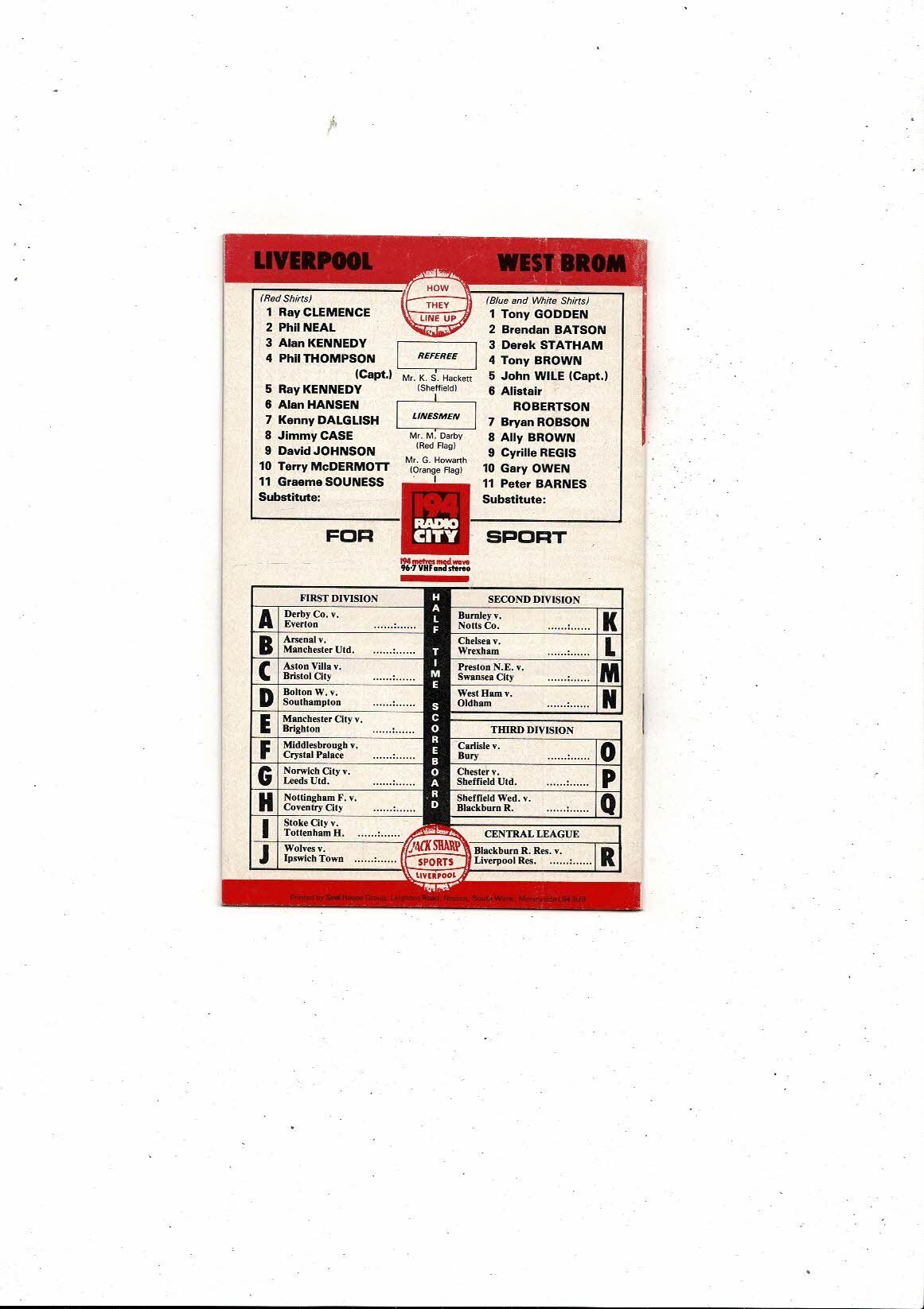 1979/80 Liverpool v West Bromwich Albion Football Programme