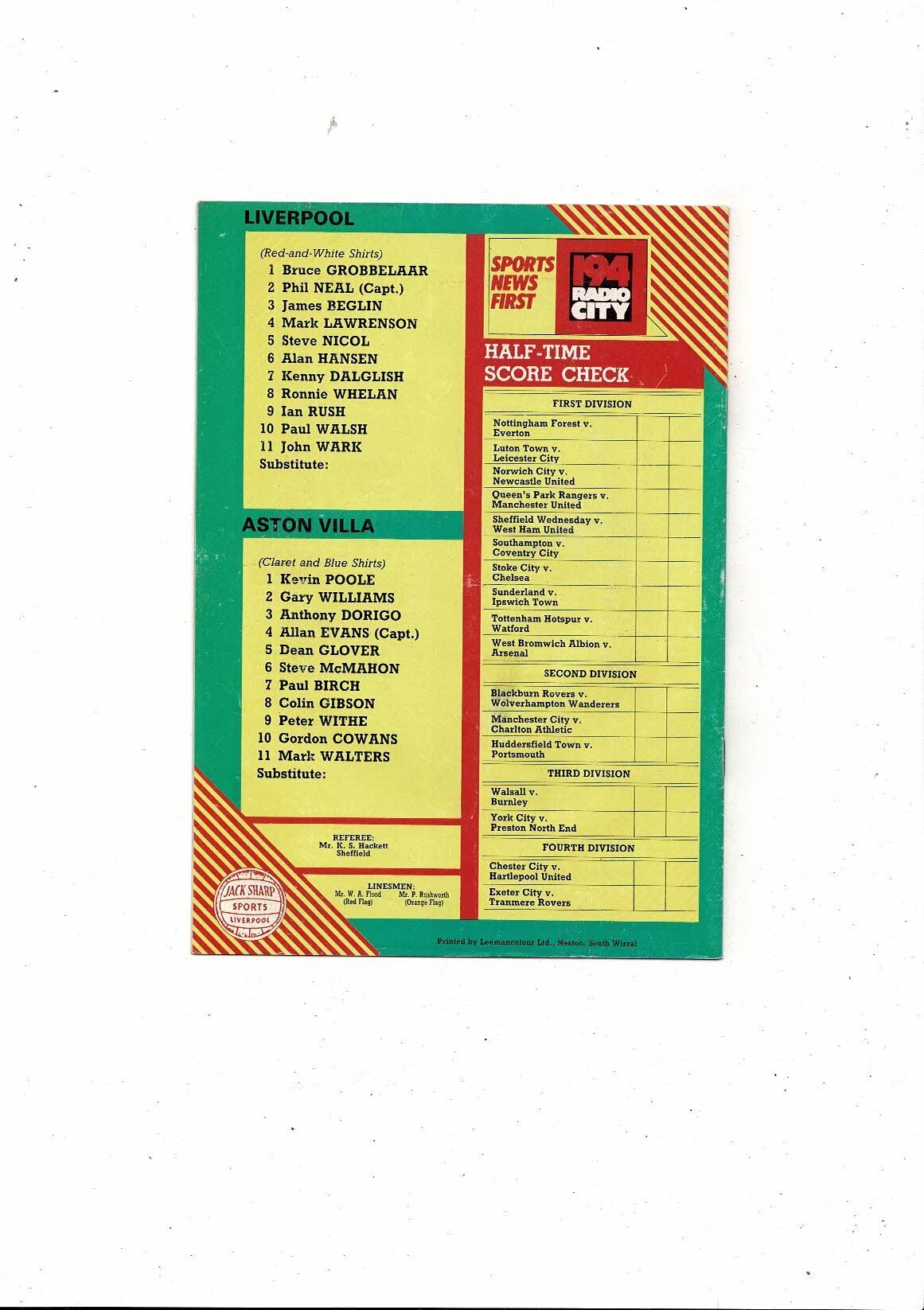 1984/85 Liverpool v Aston Villa Football Programme