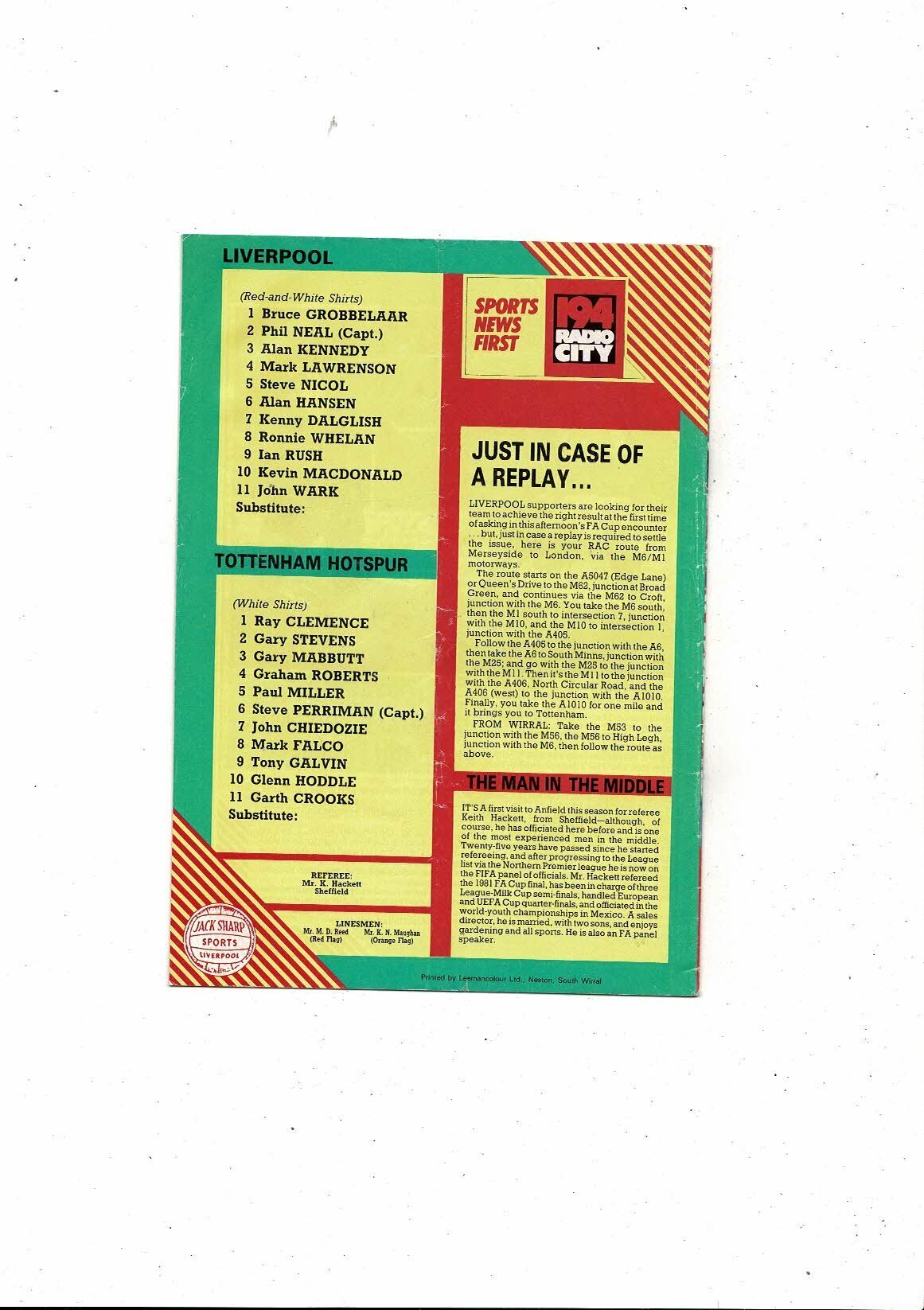 1984/85 Liverpool v Tottenham Hotspur FA Cup Football Programme