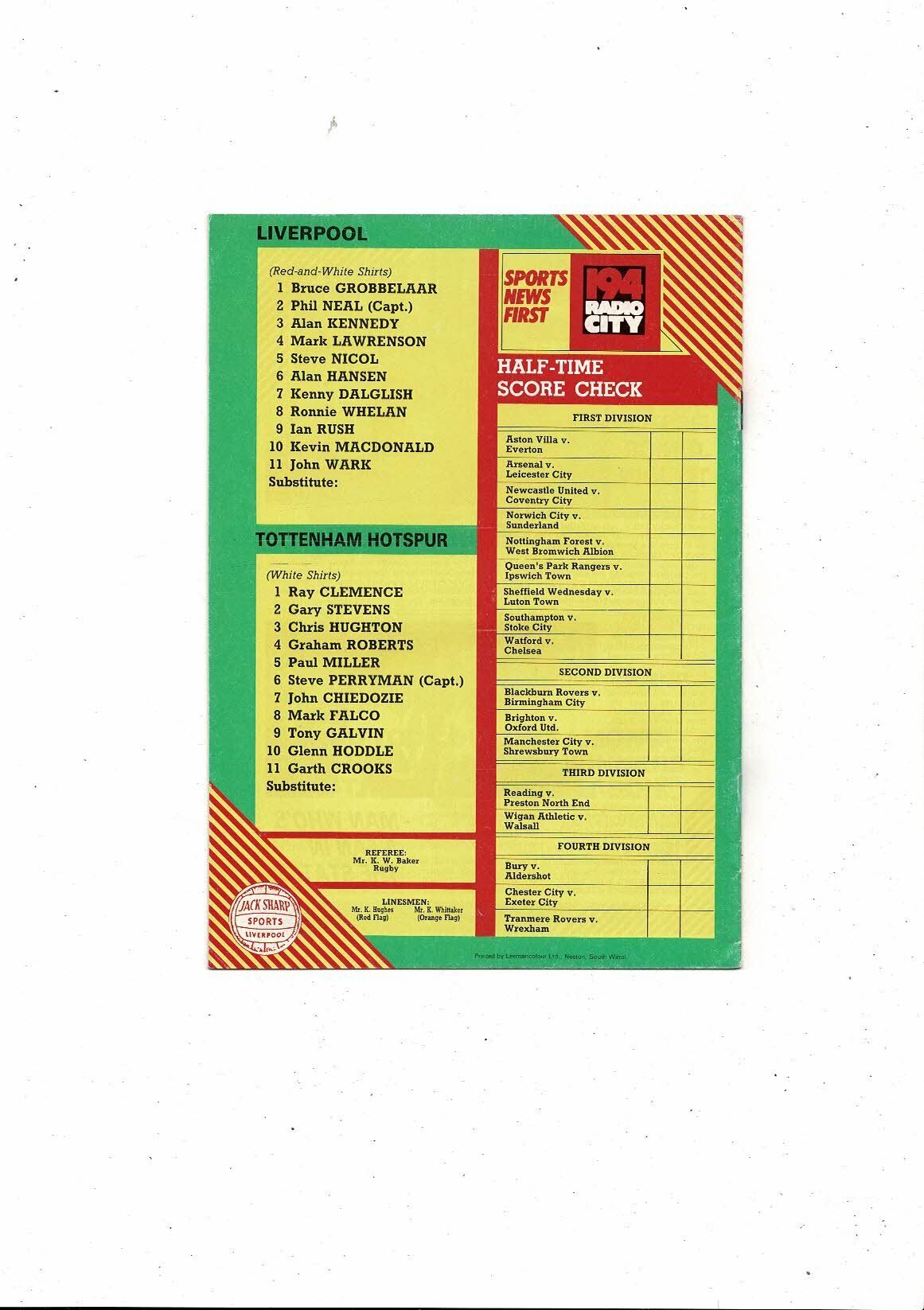 1984/85 Liverpool v Tottenham Hotspur Football Programme