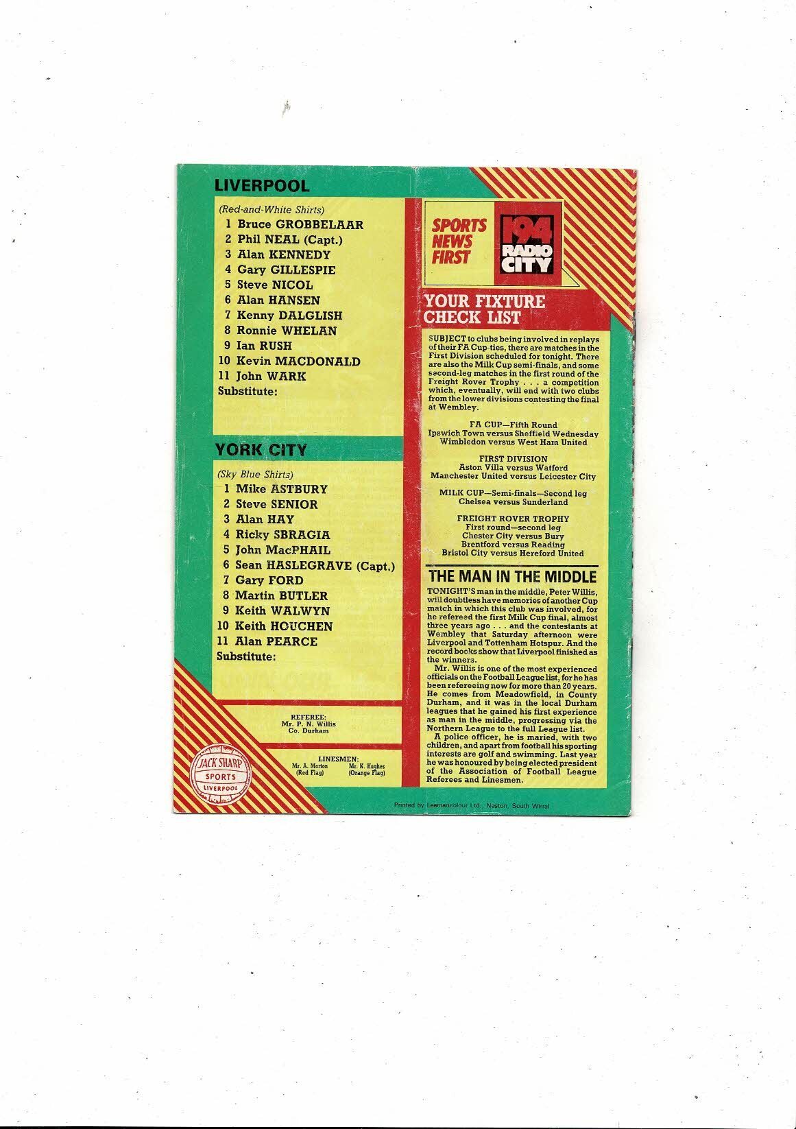 1984/85 Liverpool v York City FA Cup Football Programme