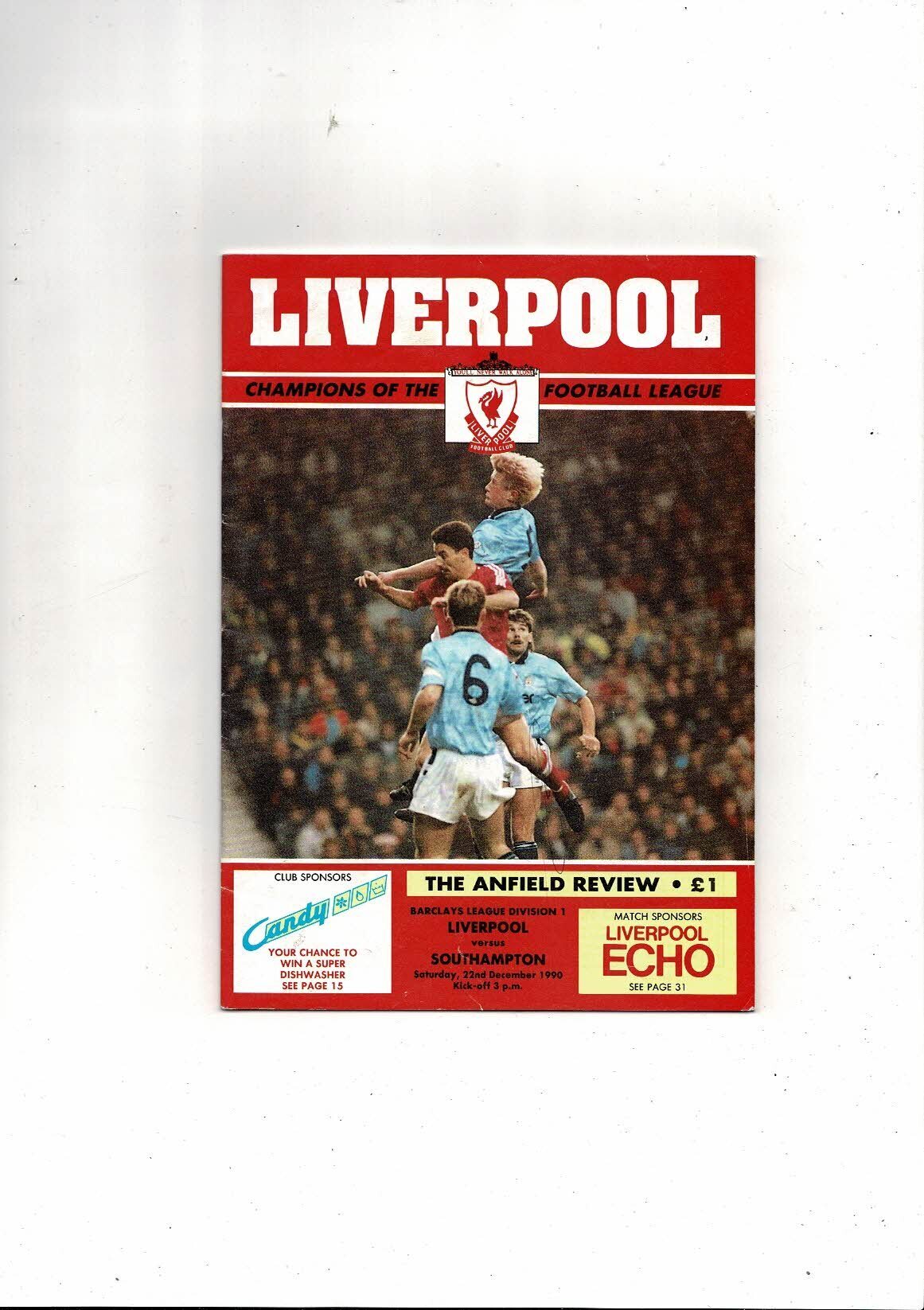 1990/91 Liverpool v Southampton Football Programme