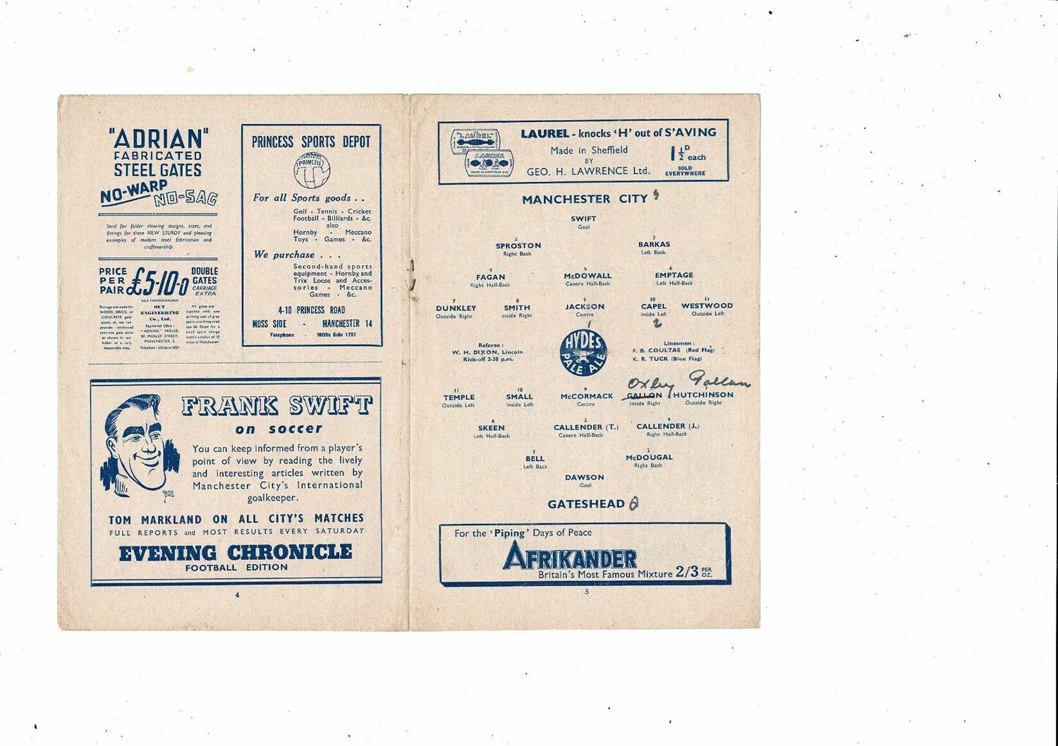 1946/47 Manchester City v Gateshead FA Cup Football Programme