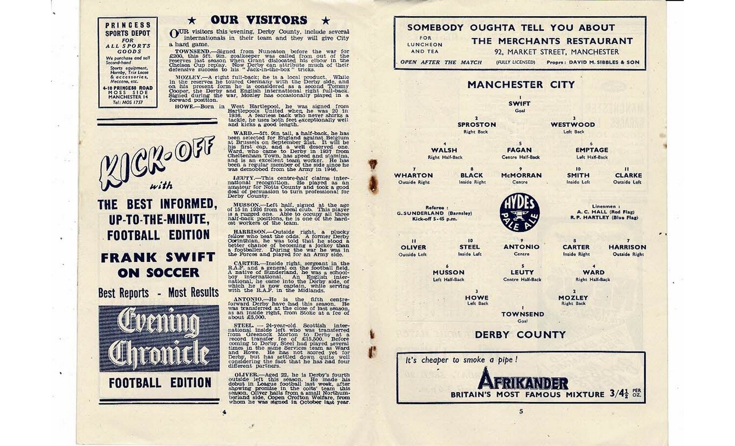 1947/48 Manchester City v Derby County Football Programme