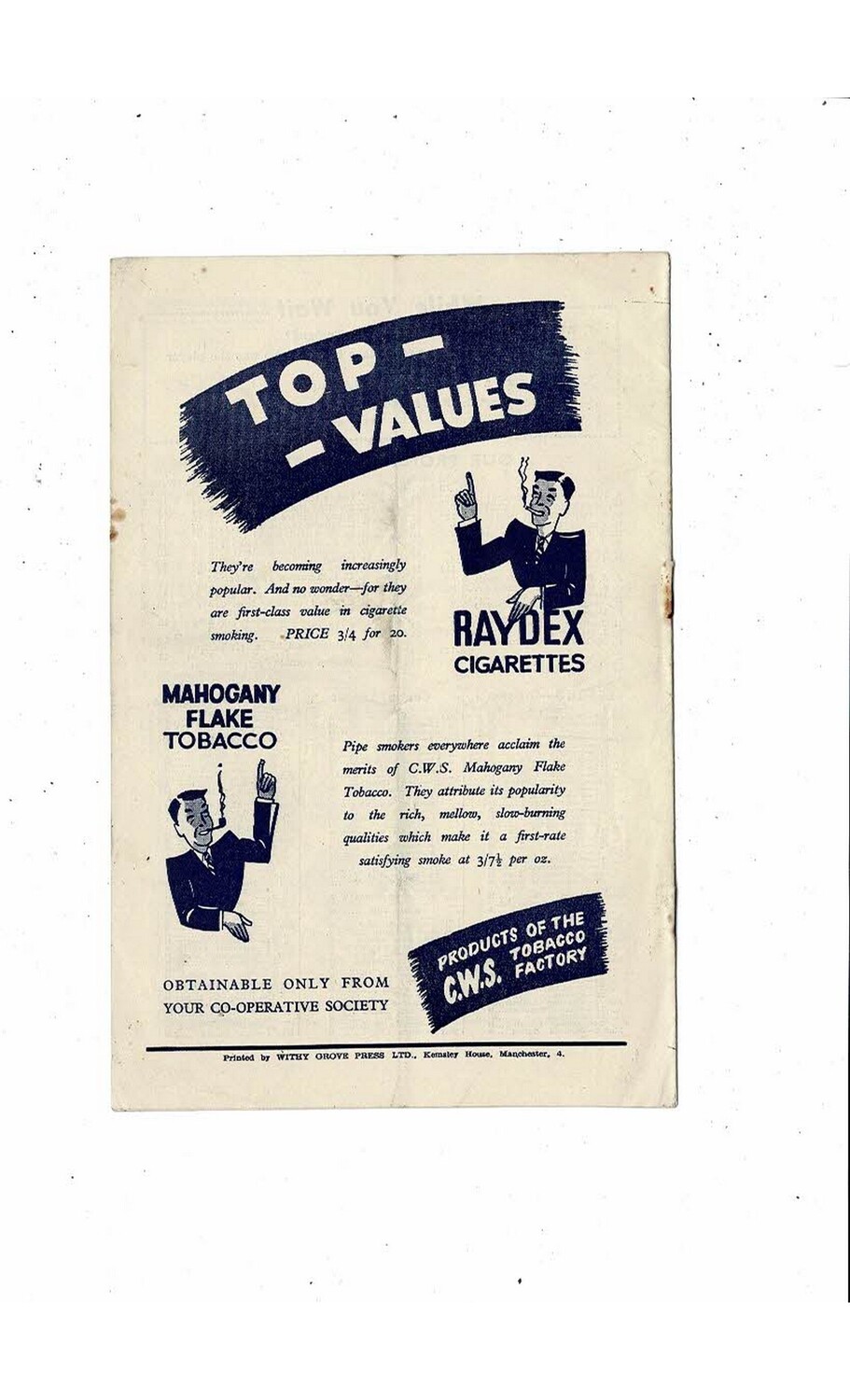 This Original Football Programme is creased also has fold with tiny nic at both ends of spine, rusty staples & some staining. No handwriting