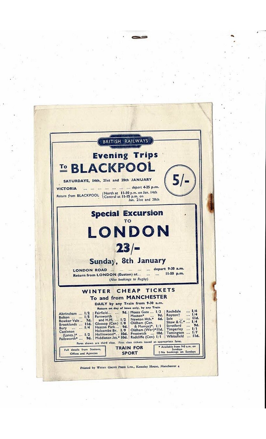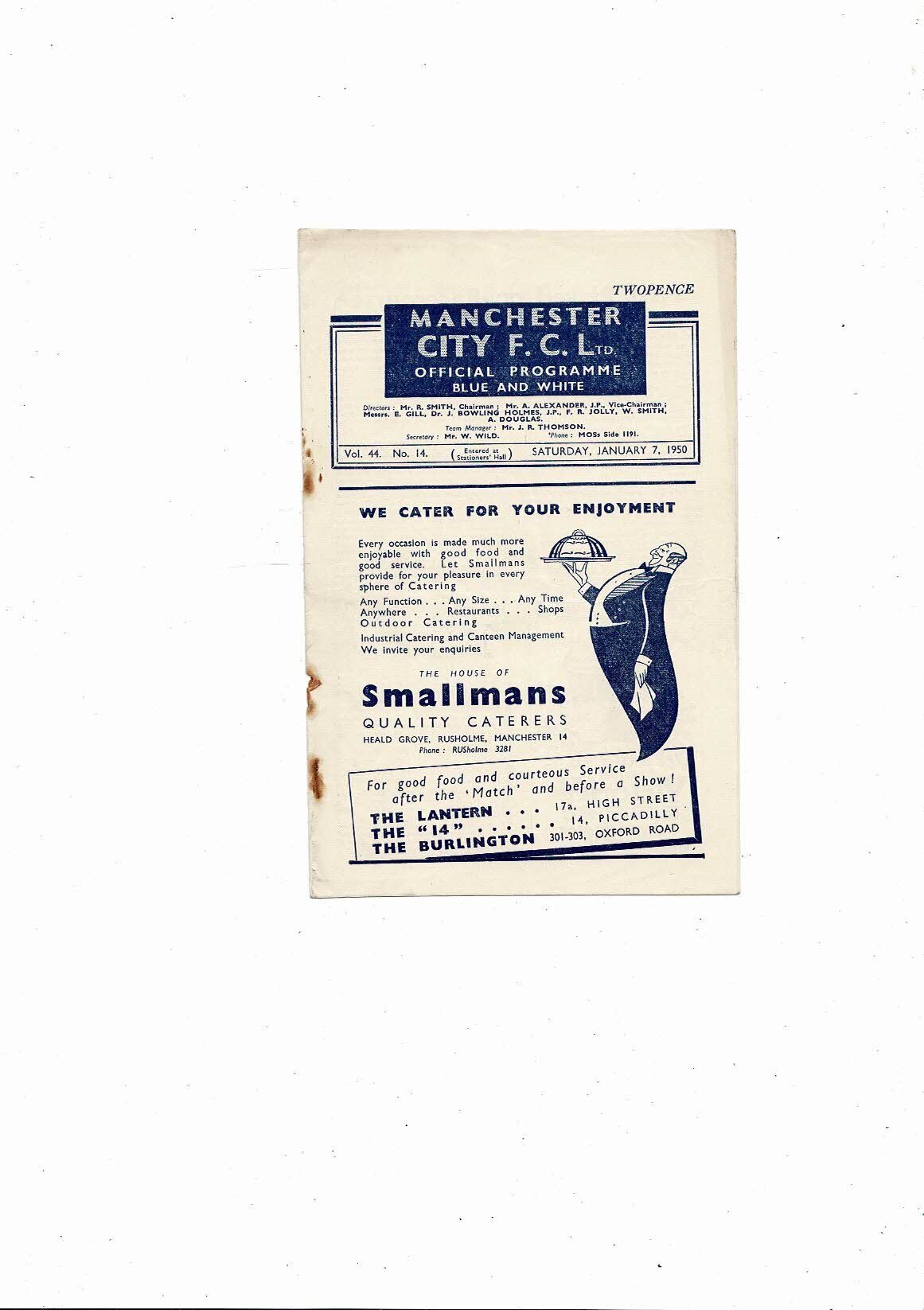 This Original Football Programme is creased also has a fold with some staining & holes from missing staples. No handwriting