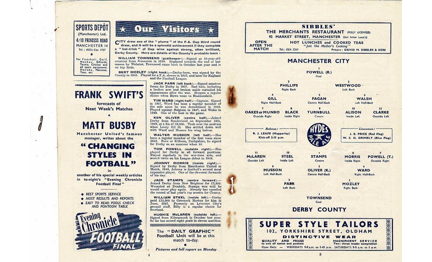 1949/50 Manchester City v Derby County FA Cup Football Programme