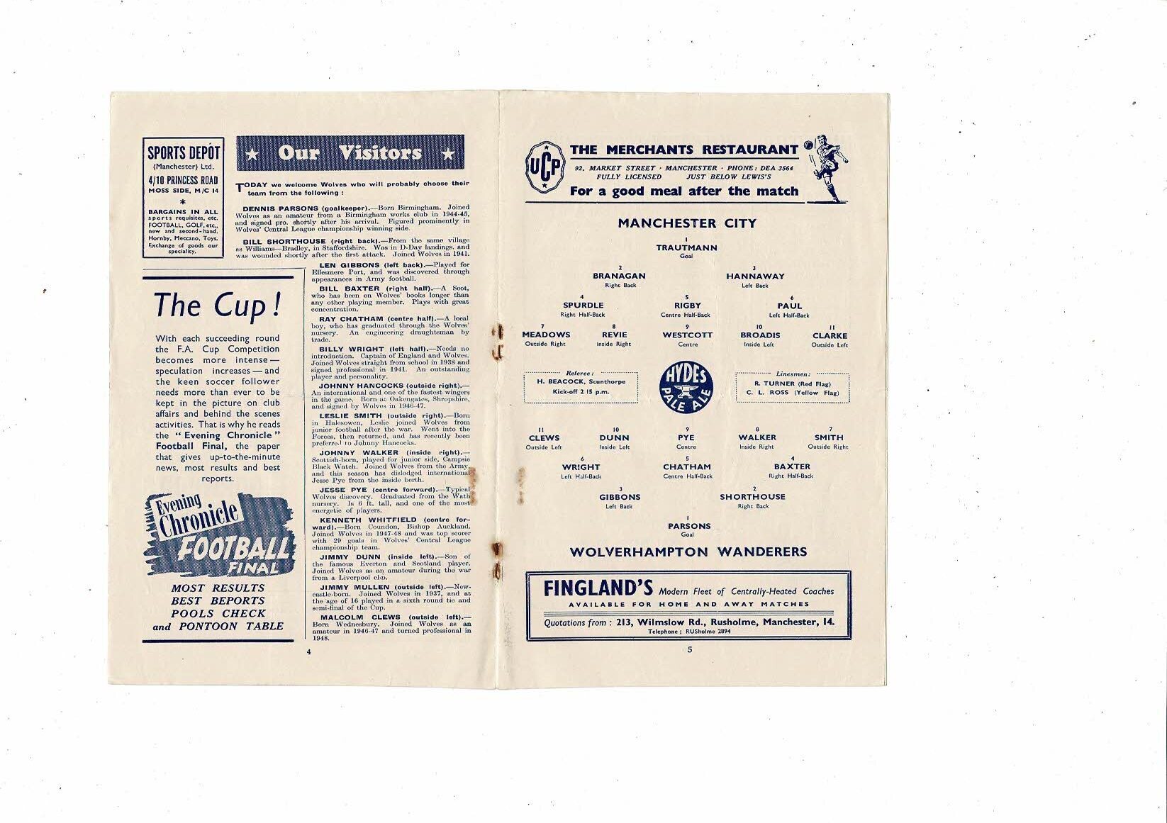 1951/52 Manchester City v Wolves FA Cup Football Programme